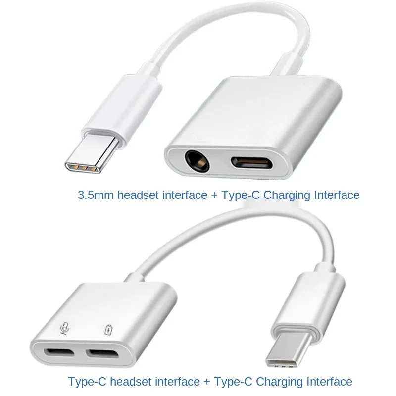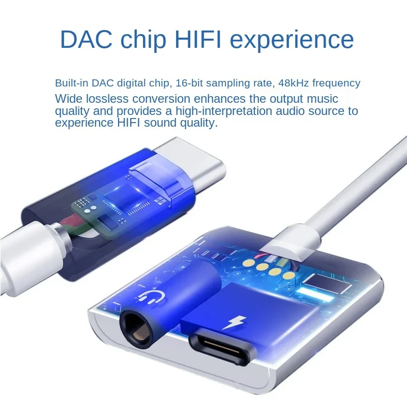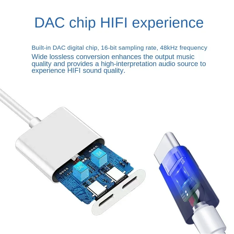El Adaptador tipo C es compatible con PD y QC Cable adaptador de carga de audio digital de carga rápida dos en uno para escuchar música