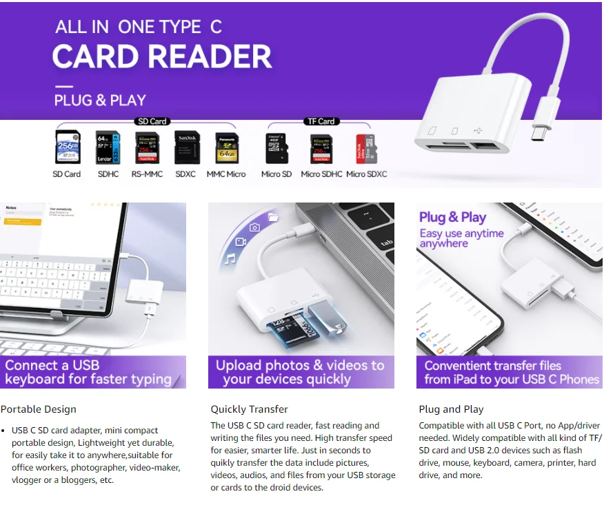 El paquete incluye 1 * Adaptador de lector de tarjetas USB C 1 * Manual del usuario