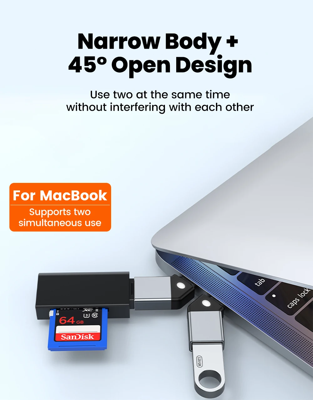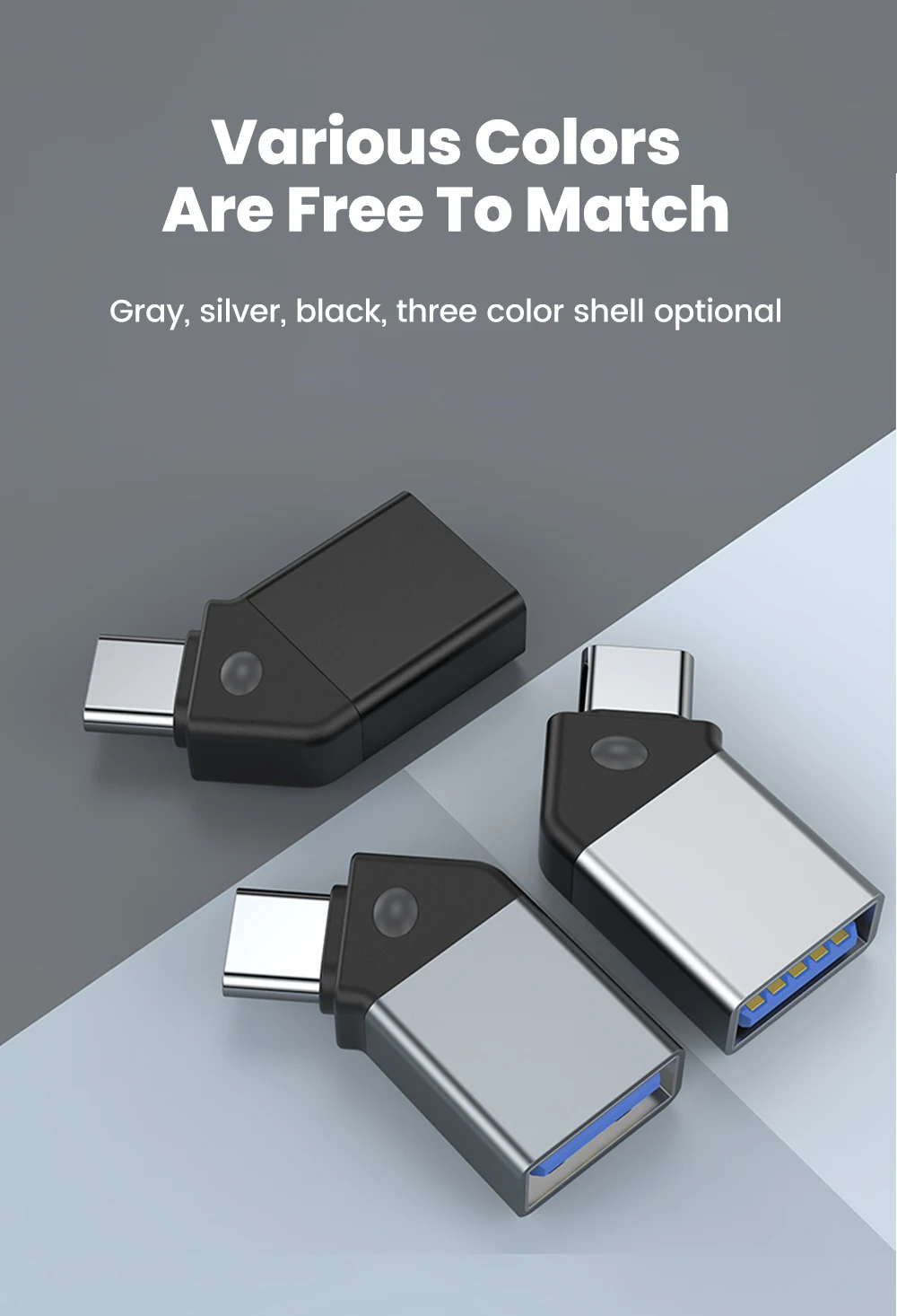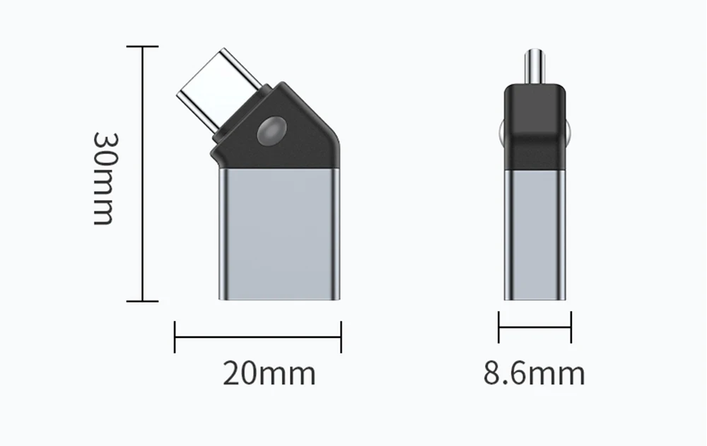 Adaptador tipo C a USB 3.0 45 ° Convertidor USB hembra a macho tipo C de ángulo abierto para teléfono, portátil, lector de tarjetas, transferencia de datos en disco U