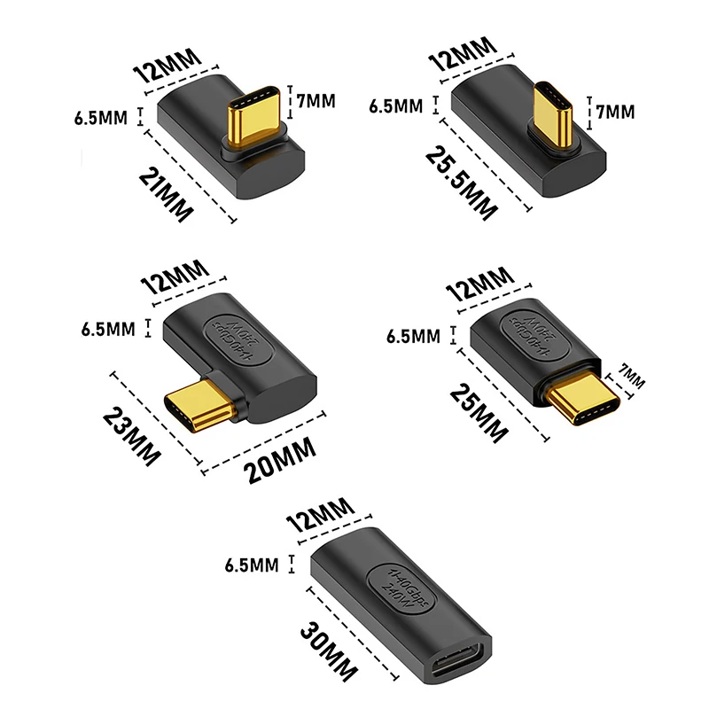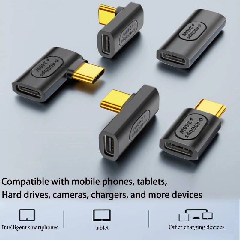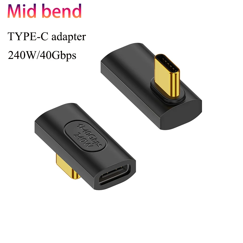 Adaptador tipo C4.0 de 1 pieza, doblado medio moldeado por inyección, carga de alta velocidad de 240W, transmisión USB 4,0, adaptador de alta definición 8K