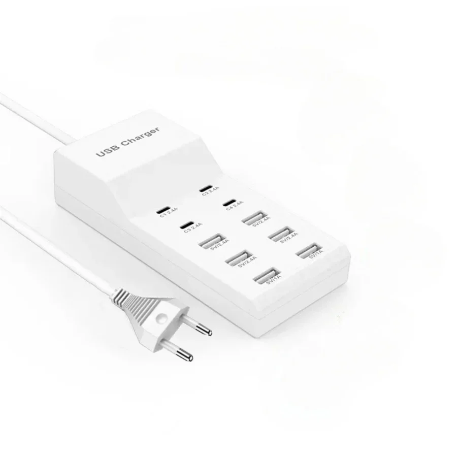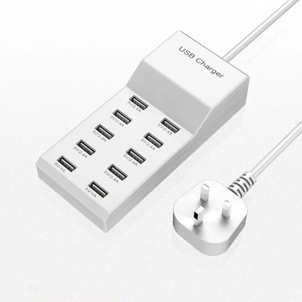 Comprar Adaptador de tira de carga rápida USB de 10 puertos, adaptador de corriente USB portátil para el hogar, oficina, cargador de pared de viaje, enchufe UE/EE. UU.