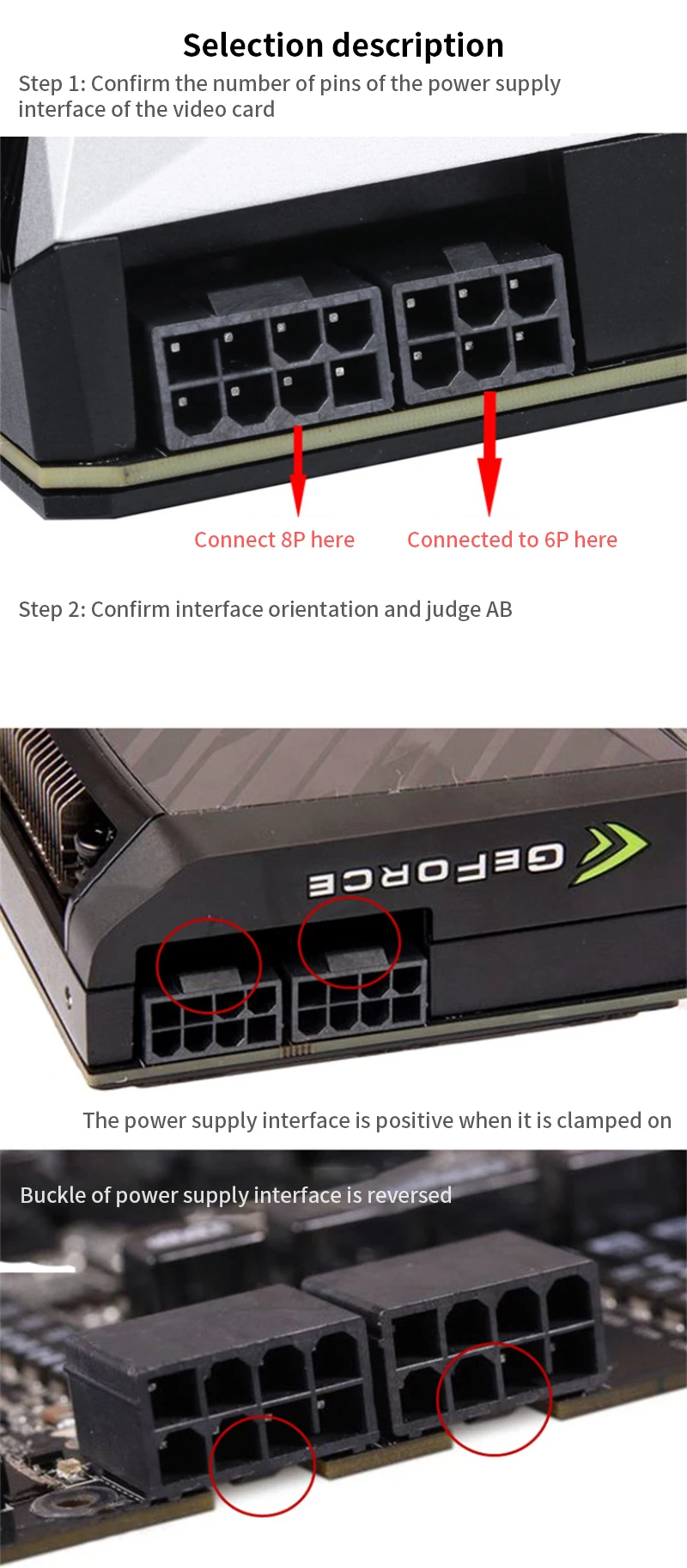 Nuevo adaptador de conector de alimentación ATX 8pin 6Pin macho 180 grados en ángulo A 8 Pin 6 Pin hembra
