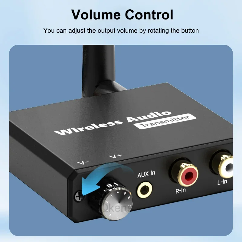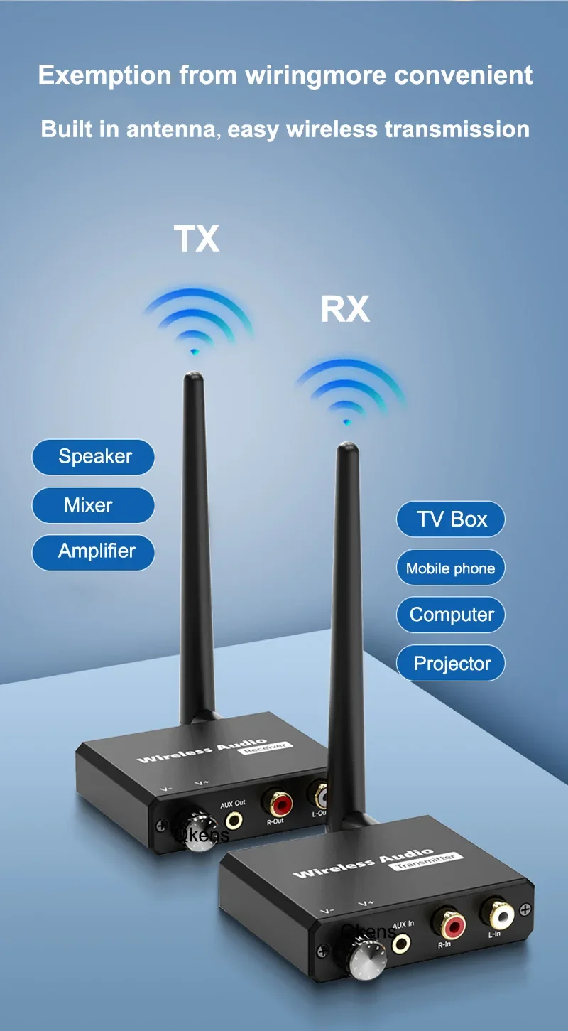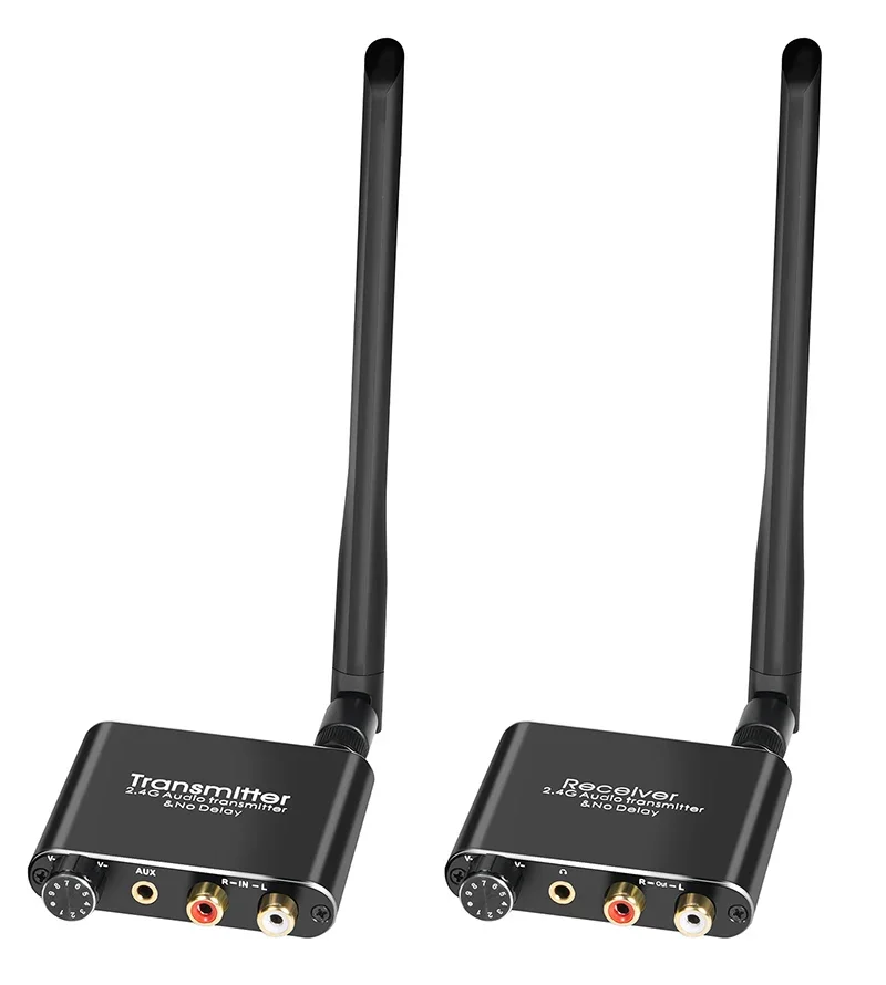 without delay transmission,The transmitter can transmit the 2.0 analog stereo audio signal of RCA and
