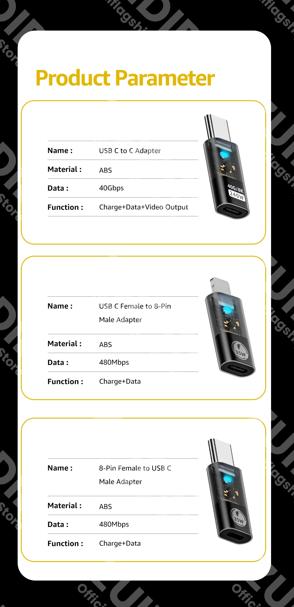 SoportePD 240WCarga rápida,40GbpsSincronización de datos y8K @ 60HzSalida de vídeo.