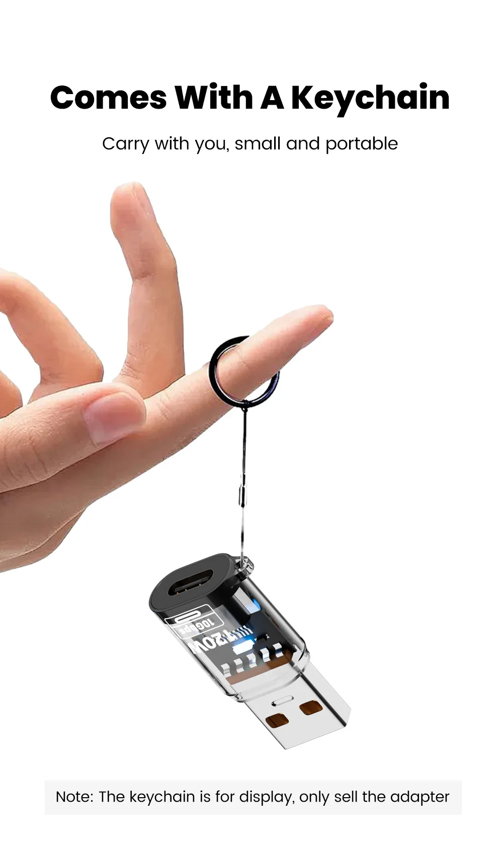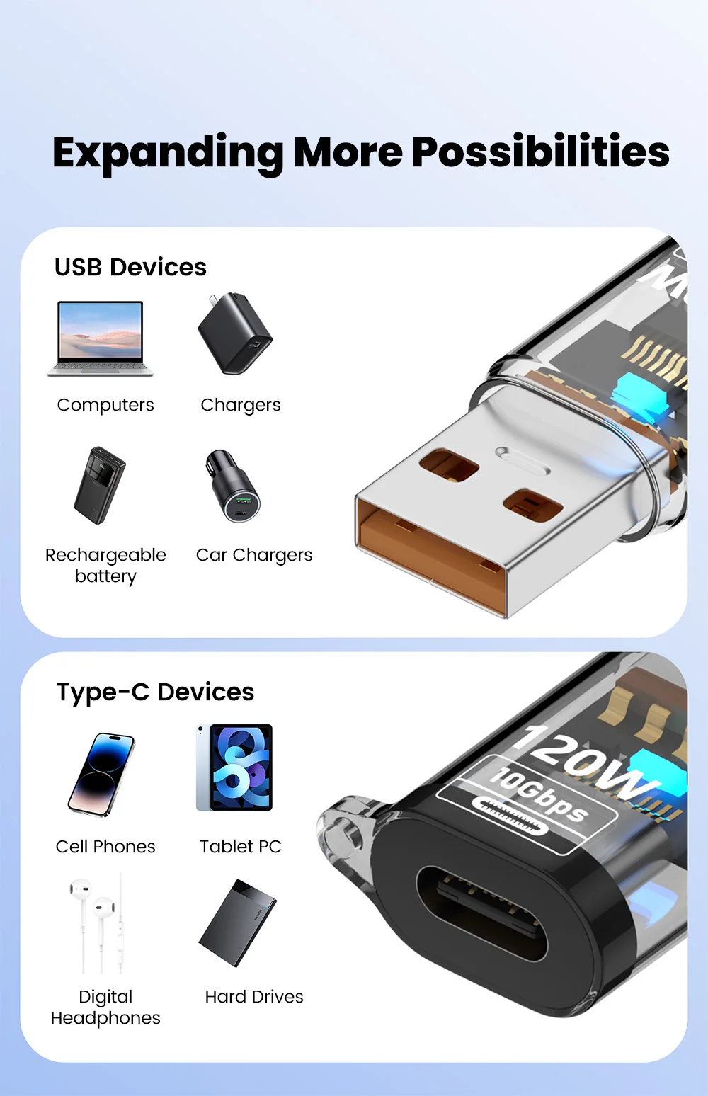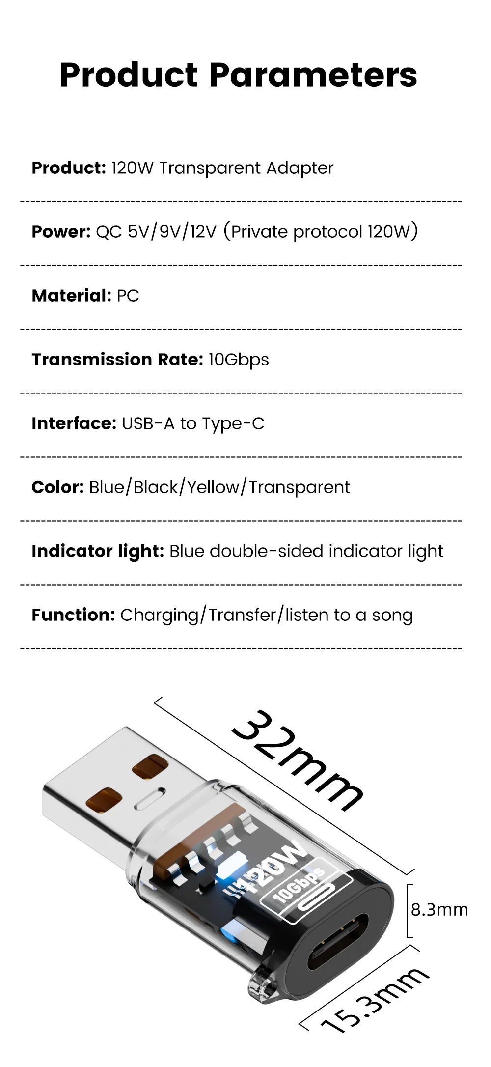 Nombre: Adaptador USB a tipo c transparente de 120w