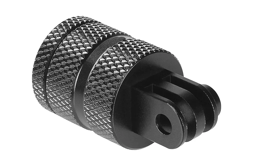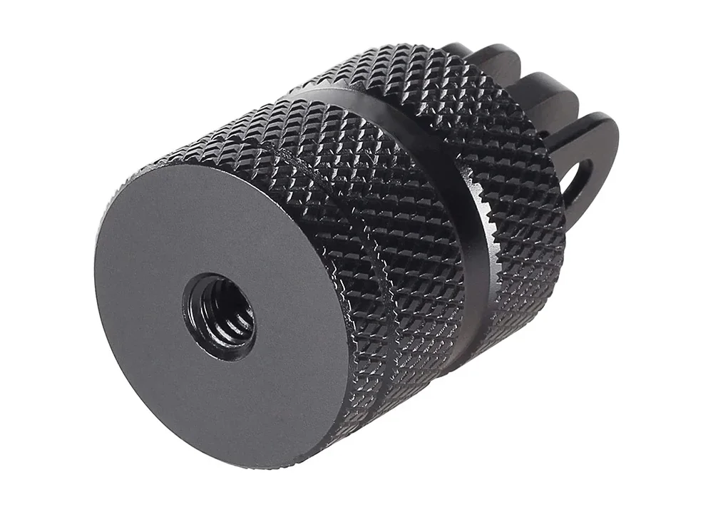 Se adapta a las Cámaras Deportivas estándar con un roscado estándar de 1/4 pulgadas 20. Permite que la cámara estándar o de acción se conecte fácilmente a cualquier soporte o accesorio de cámara Go Pro.