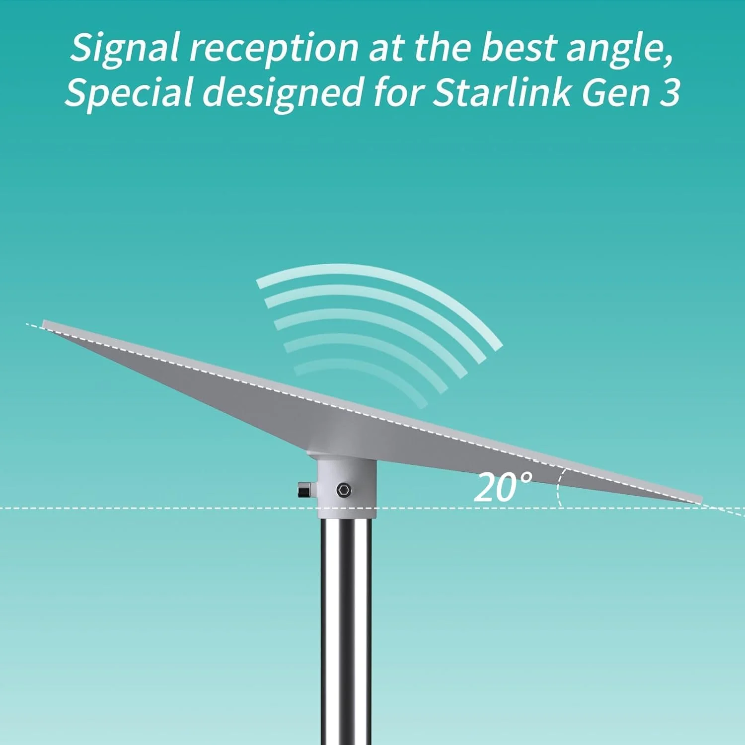 Optimización mejorada: el adaptador de tubería Starlink Gen 3 está diseñado para la antena Starlink V3, lo que permite una rotación de 360 grados y 20° Inclinación para garantizar que el plato esté siempre orientado correctamente en el poste para recibir señales.