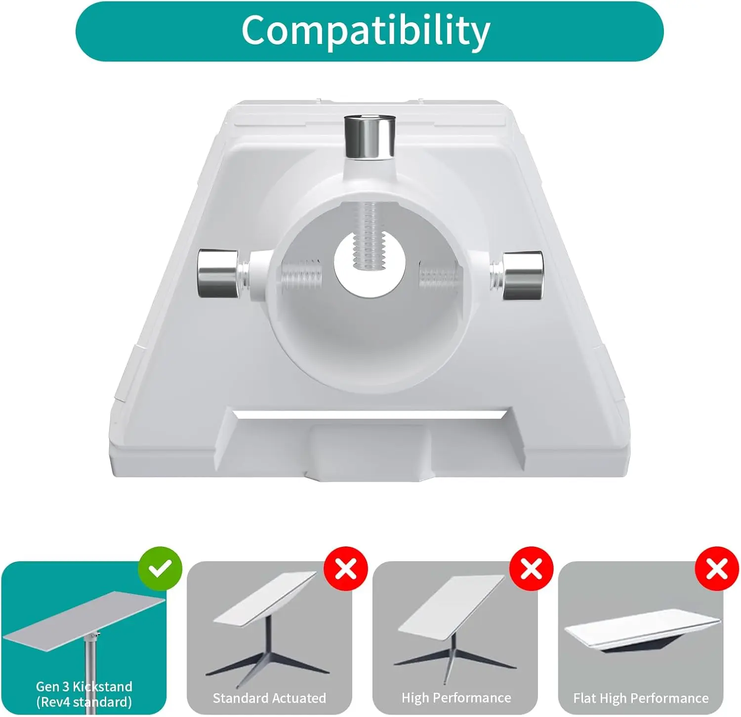 Diseño único: el diseño de fijación de tres tornillos permite que el poste entre en contacto perfectamente con el enchufe y también permite que el adaptador se fije de forma segura a un poste o tubería, lo que garantiza que su kit de adaptador de tubería de montaje Starlink Gen 3 permanezca firmemente sujeto al poste.