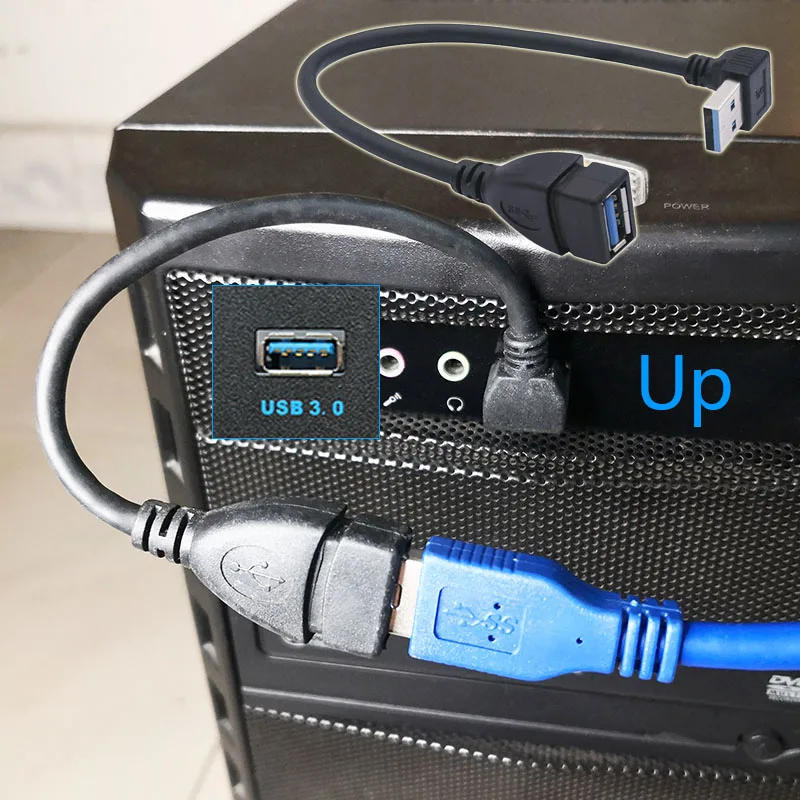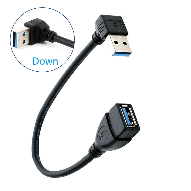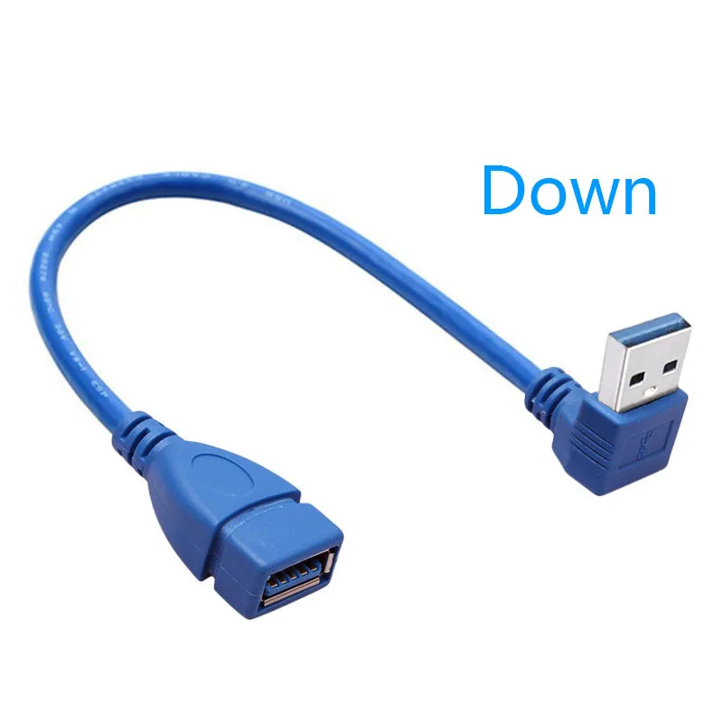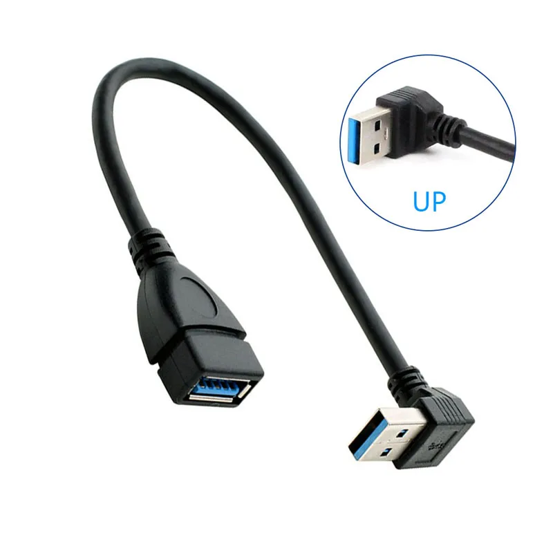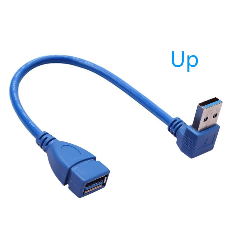 Adaptador USB 0,2 macho a hembra para ordenador portátil, Cable convertidor de ángulo recto Vertical de 90 grados, Color azul y negro, 3,0 M