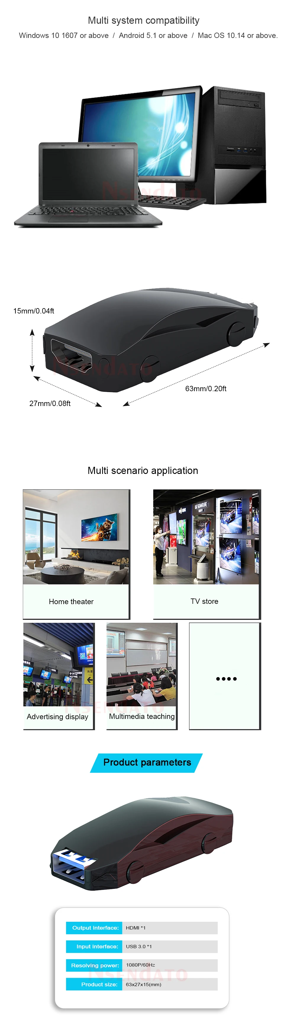 Tableta PC, etc. A pantalla de tamaño más grande a través de la interfaz USB3.0. Es compatible con interfaz HDMI