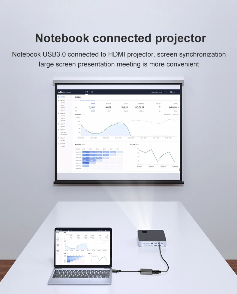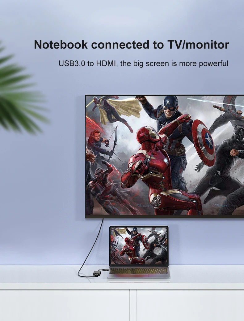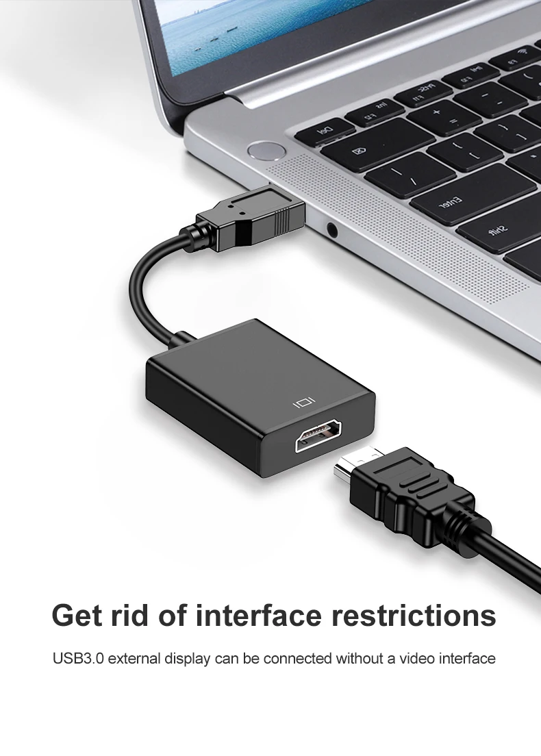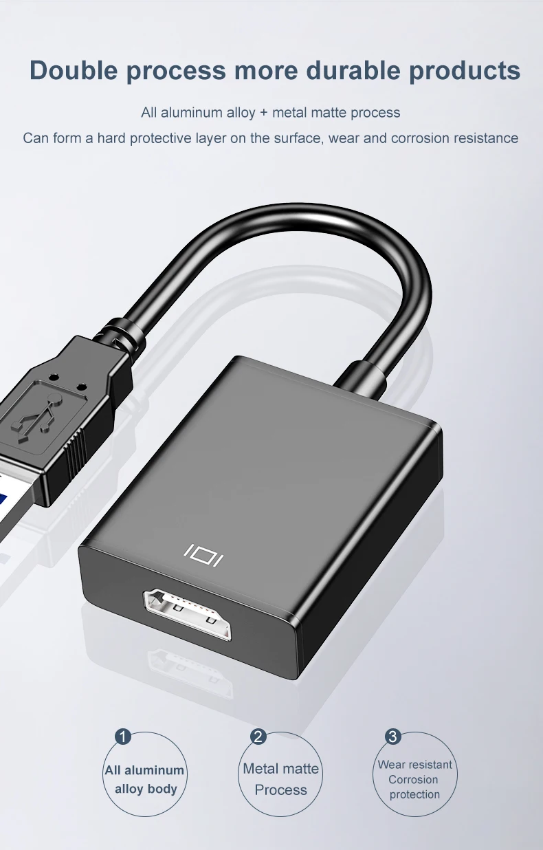 Este adaptador USB a HDMI puede conectar un ordenador a través de la interfaz USB a un HDTV, monitor o proyector con interfaz HDMI. Entregará fuentes de audio y video de alta definición en el ordenador a su HDTV o monitor, por lo que el problema de visualización de video externo del ordenador se resolverá fácilmente.