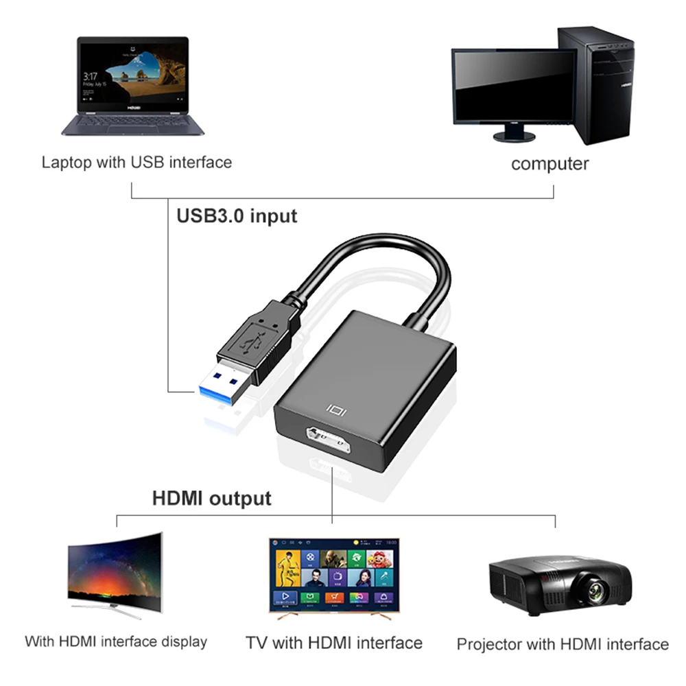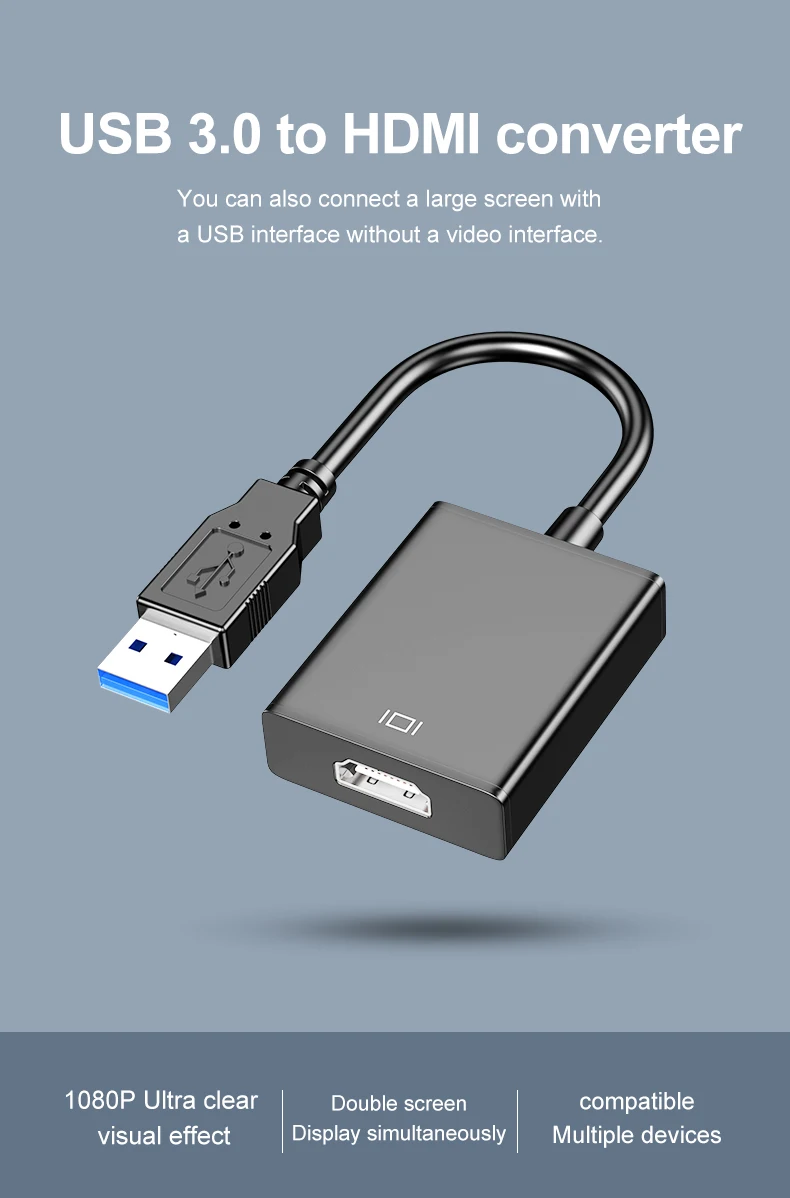 Cable convertidor de adaptador de audio y vídeo USB 3,0 a HDMI para Windows 7/8/10 PC 1080P