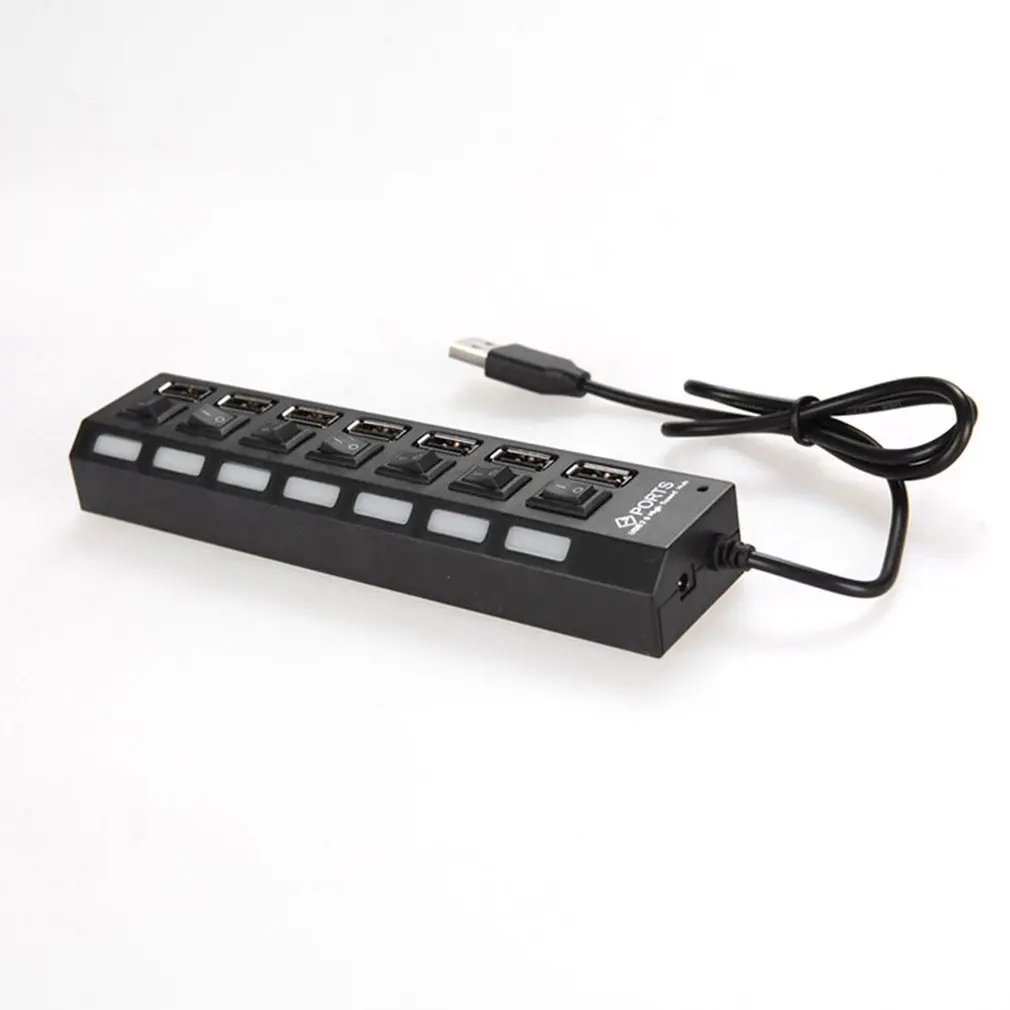 Comprar Adaptador USB 2,0 con 7 puertos para el hogar y la Oficina, concentrador de carga, interruptor de encendido y apagado para PC y portátil