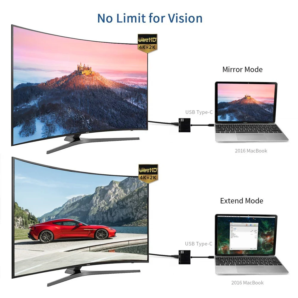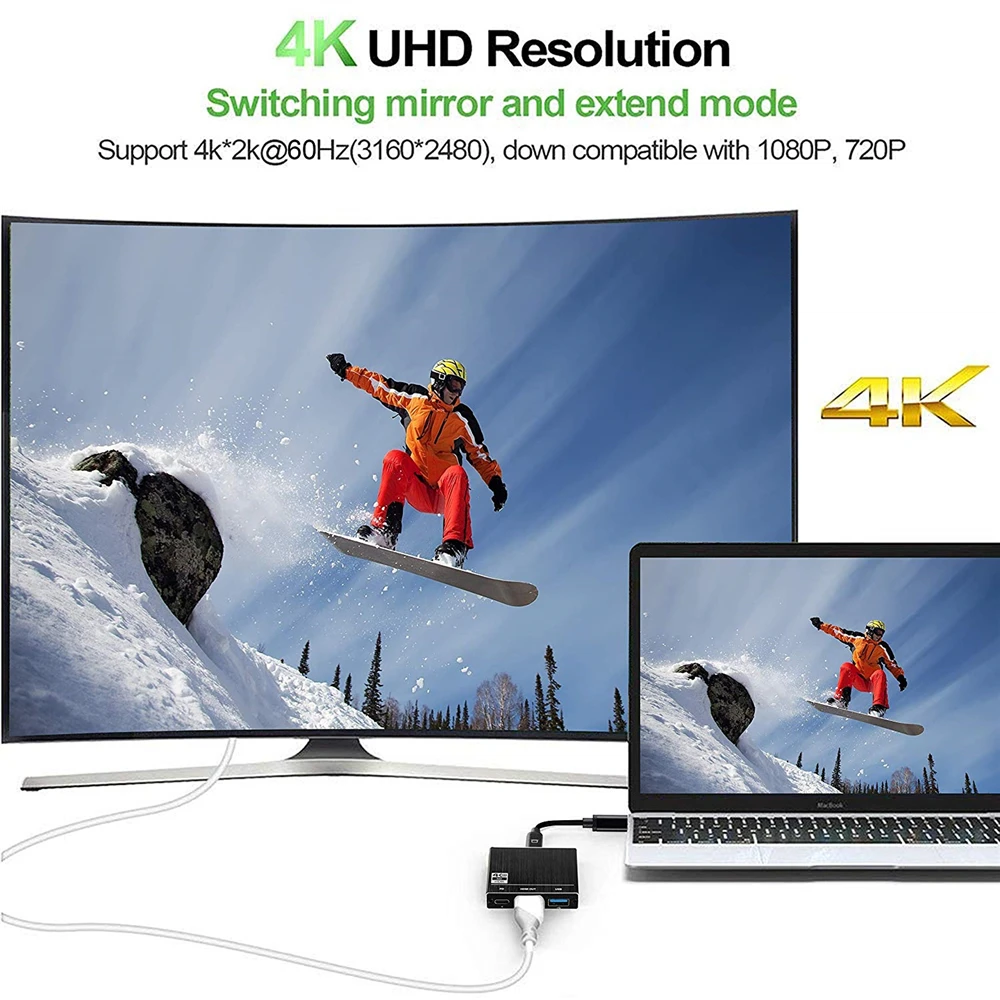4K a 60Hz USB C a HDMI: Refleja o extiende tu pantalla con USB C a HDMI y transmite directamente HDR 4K x 2K a 60Hz (3840 × 2160P, HDMI 2,0, HDCP 2,2), Full HD 1080P o vídeo 3D a pantalla HDTV externa, monitor o proyector (compatible con resoluciones de 2K/1080p/720p/480p/360P).