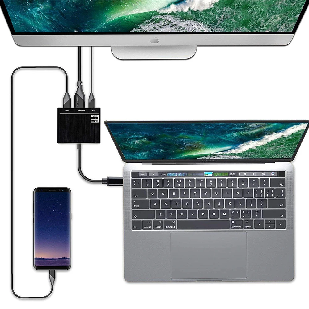 CONEXIÓN MULTIPORT 3 EN 1: avedio links USB C Hub incluye 1 puerto de carga PD hembra USB tipo C (100W, 5Gbps), 1 puerto HDMI compatible con 4K a 60Hz, 1 puerto USB 3,0 (40W, 5Gbps). Este concentrador USB C se aplica a todos los ordenadores portátiles tipo C (PS: el dispositivo admite el modo alternativo para la salida de vídeo a lo largo de la USB-C).