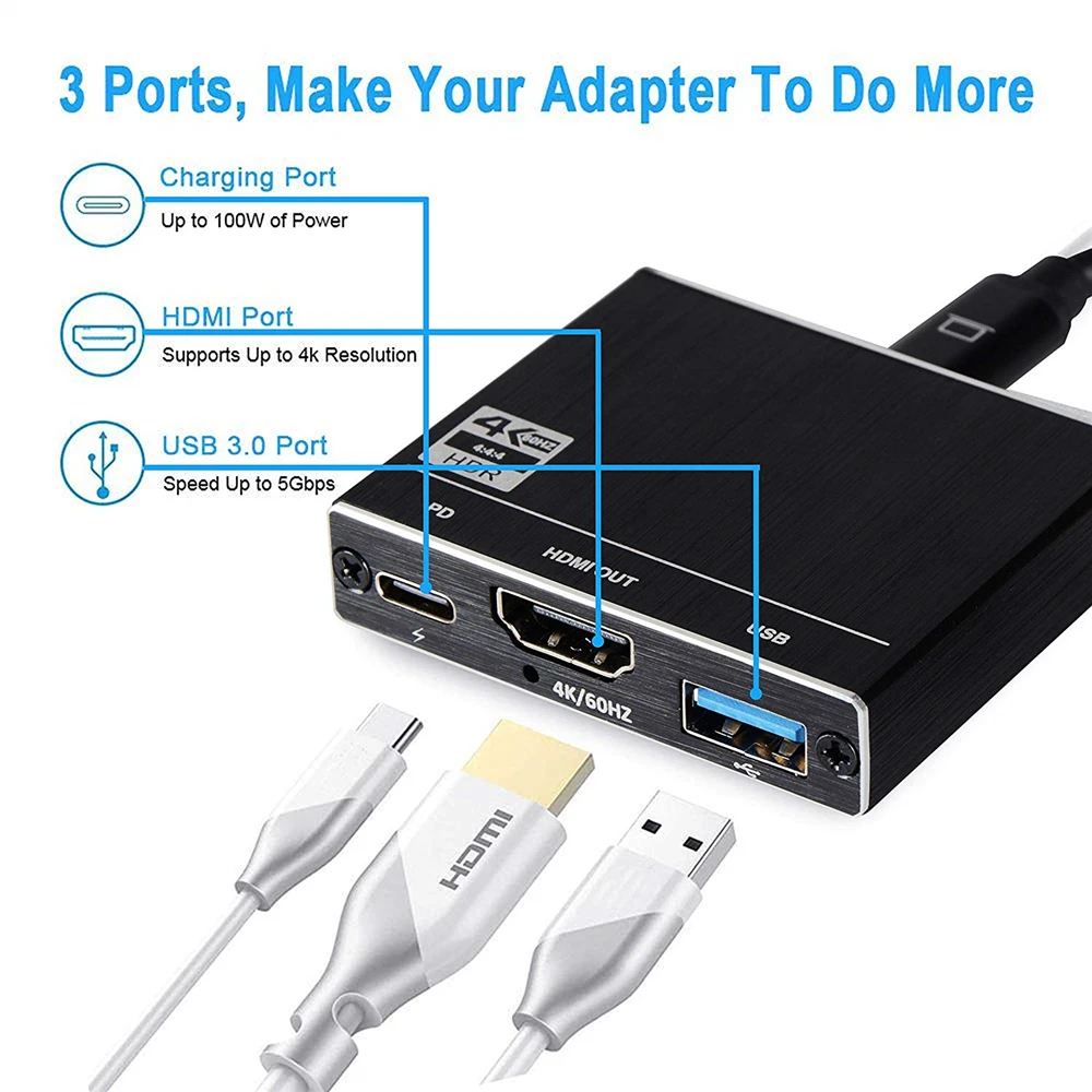 Comprar Adaptador USB 2024 tipo C a HDMI para MacBook Pro, 100, 3,1 W, PD, 4K, 60Hz, HDMI 2,0, USB C a HDMI tipo C, convertidor HUB USB 3,1