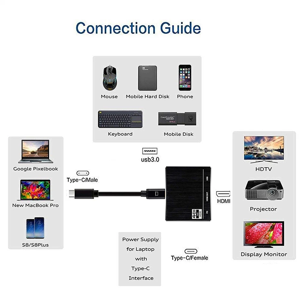 Navceker-Concentrador de alimentación multifunción 3 en 1, con entrega de energía, es una solución ideal para ordenadores portátiles y otros dispositivos con un puerto disponible de tipo 2 o Thunderbolt 3 (3. 3). Le permite cargar su MacBook Pro, MacBook, google Chromebook Pixel u otro suministro de energía USB admite dispositivos tipo C con su cargador original mientras transmite videos simultáneamente a través del puerto de salida HDMI y transfiere archivos a través de los puertos USB 3,0.