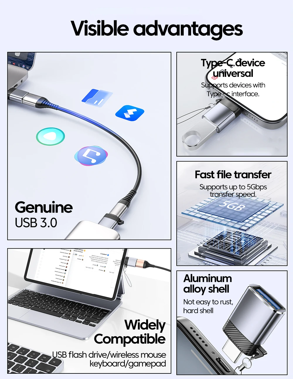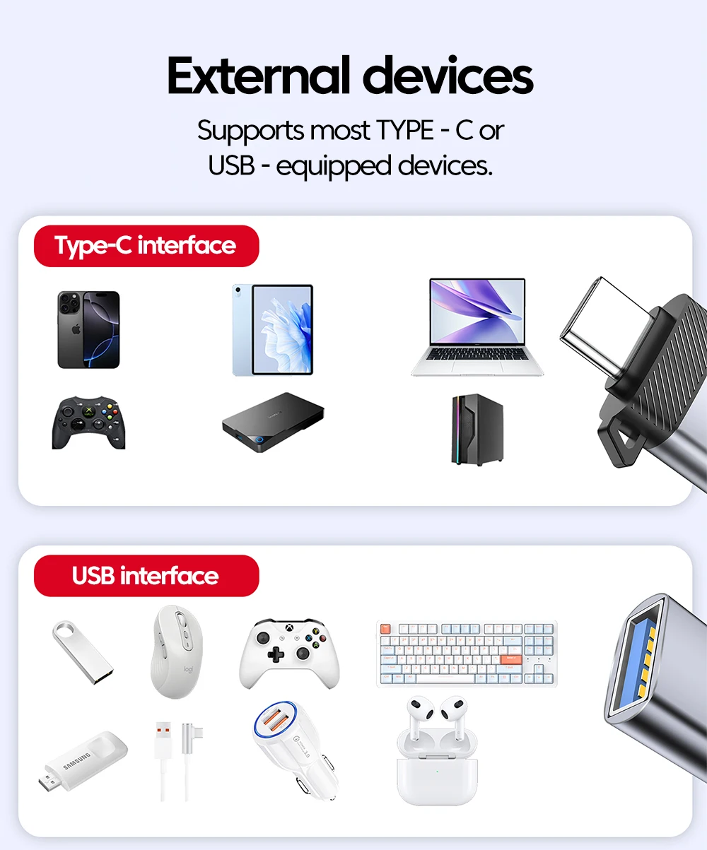 Adaptador USB 3,0 OTG tipo C macho a USB hembra adaptador de transferencia rápida OTG conector USB C para iPhone 16 15 Xiaomi Samsung Laptop