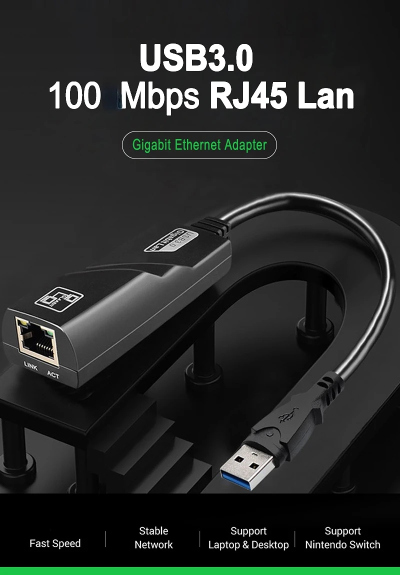 Comprar Adaptador USB 3,0 a Rj45 Lan Ethernet con cable, Cable de red Gigabit Ethernet Usb 3,0 de 100Mbps para tarjeta de red Xiaomi MiBox Windows10