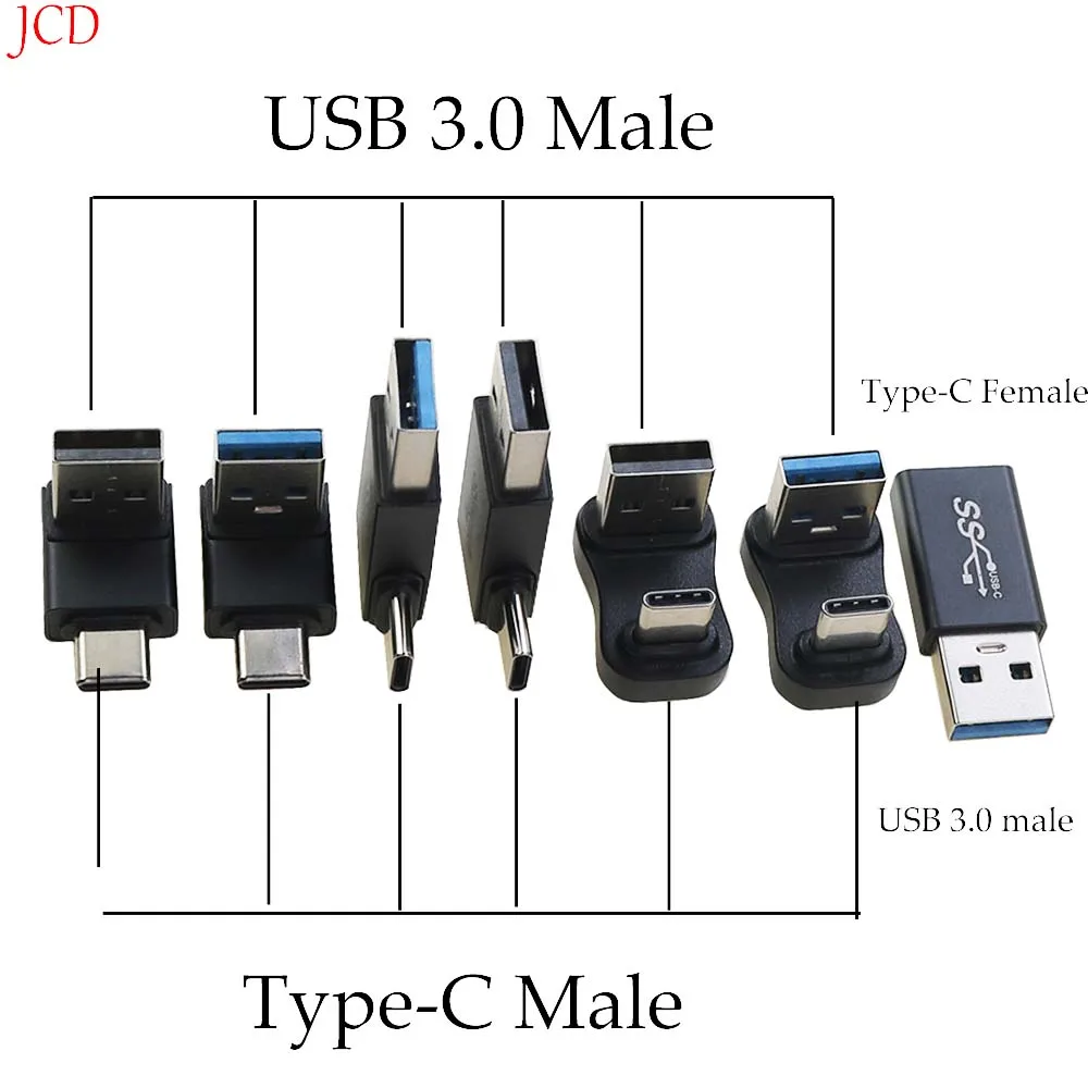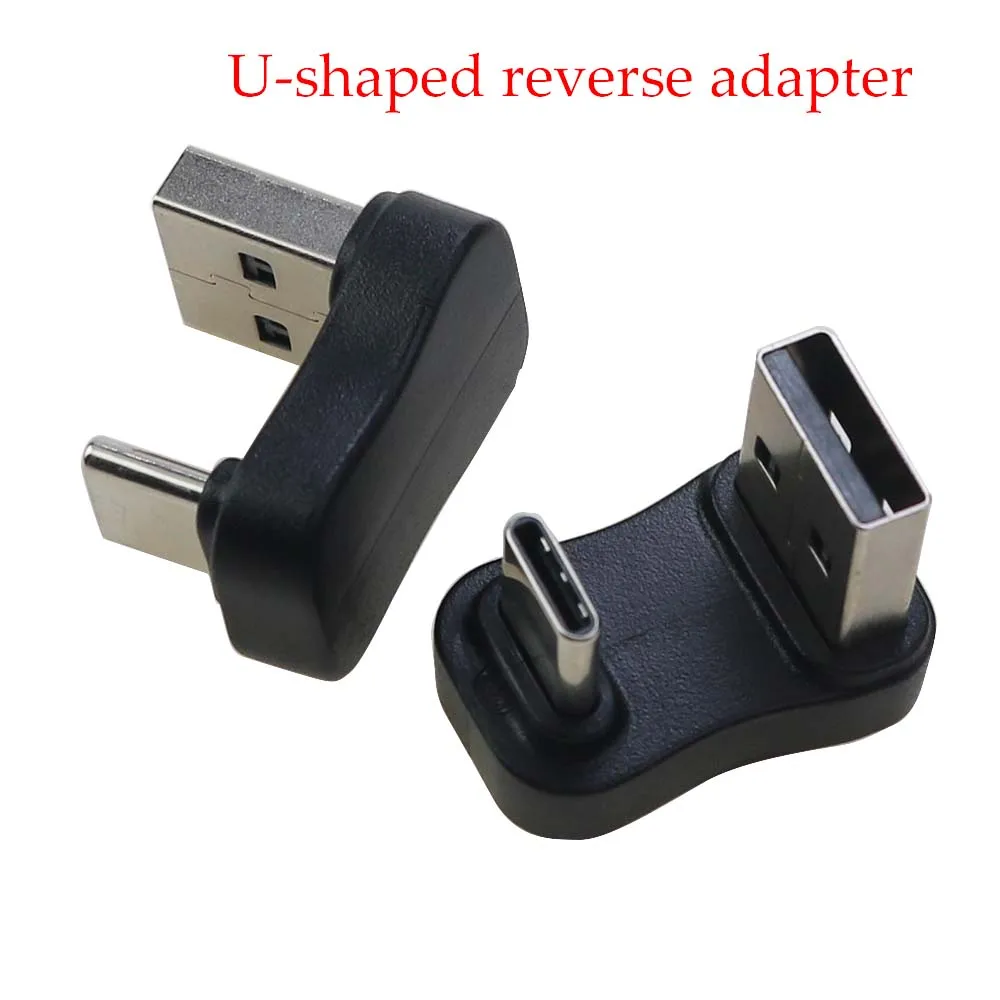 1 Adaptador USB 3,1 a tipo C codo tridimensional en forma de U curvo, adaptador OTG de transmisión de datos de carga de teléfono móvil
