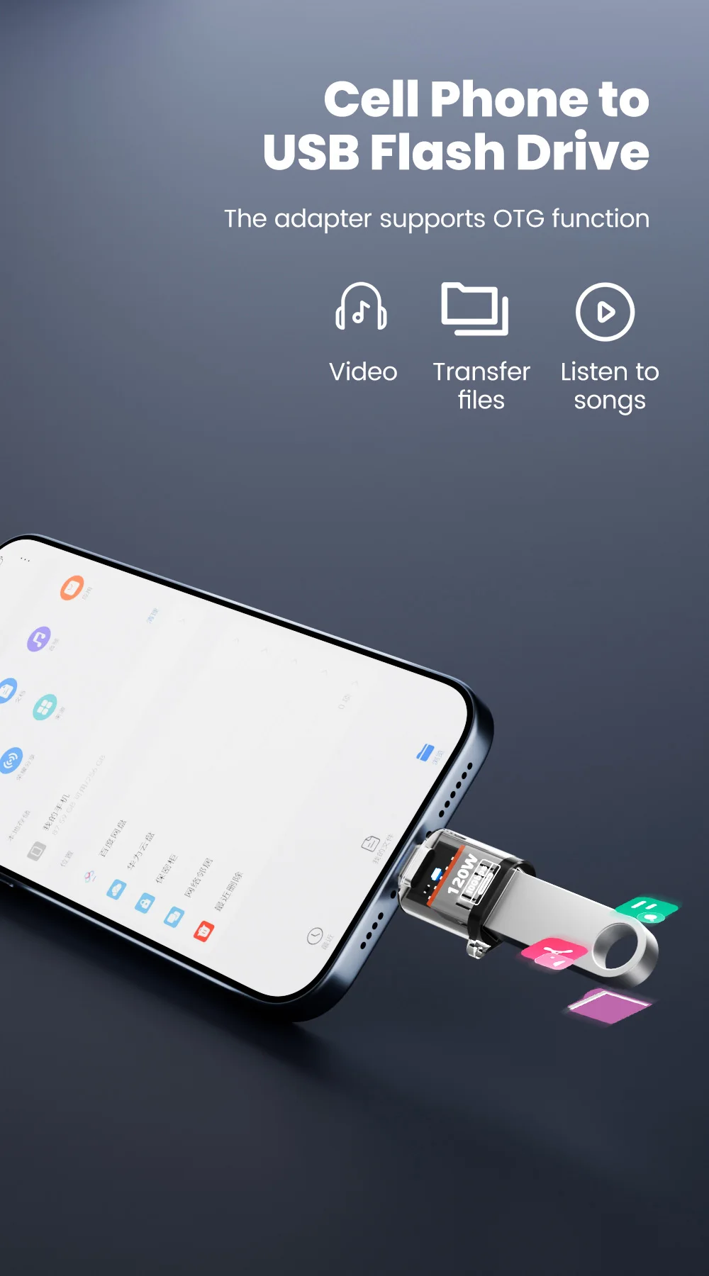 3. Carga y transmisión dos en uno/OTG universal para teléfonos móviles/tabletas/computadoras
