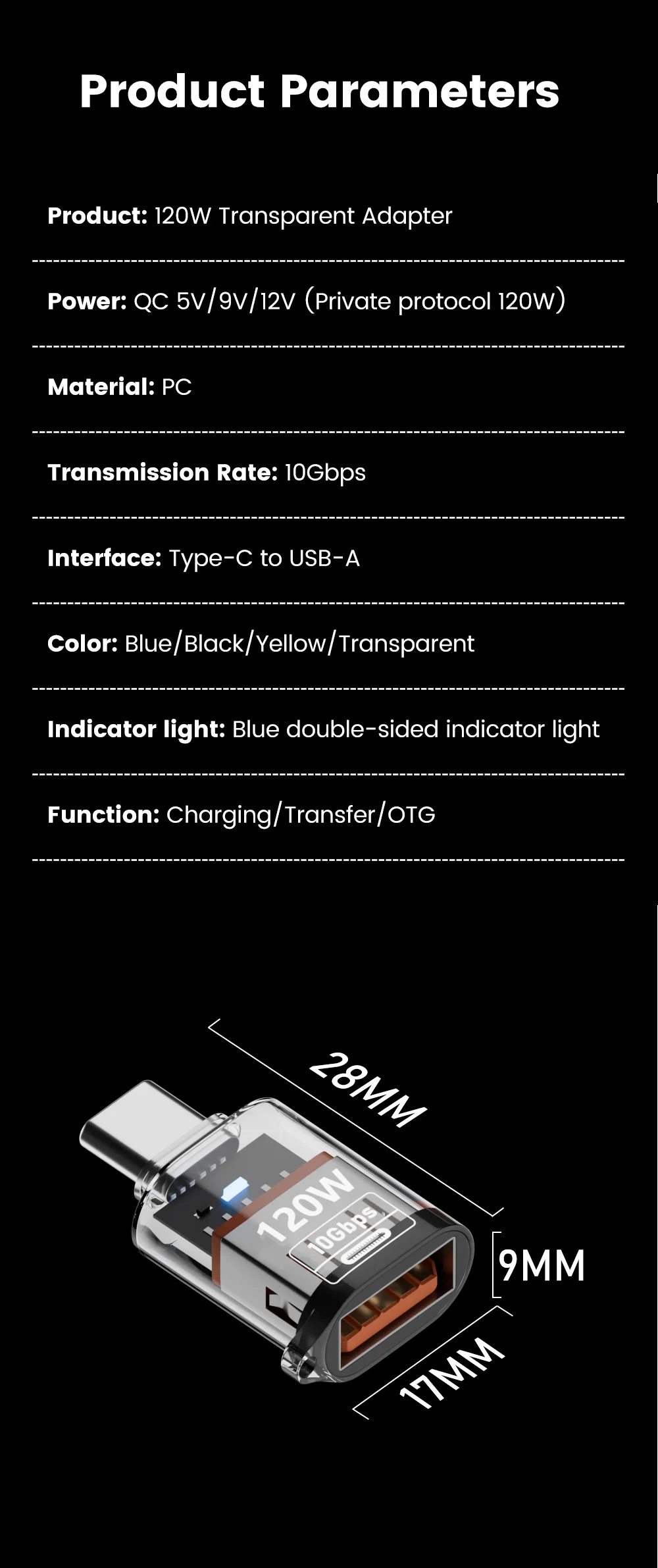Comprar Adaptador USB 3,2 a tipo C de carga rápida de 120W OTG 10GB transferencia de Audio de datos de alta velocidad para PC tableta Xiaomi Huawei convertidor USB C