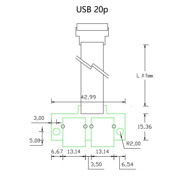 1. Cable plano de 20 pines de Panel de montaje de tornillo hembra USB 3,0 de doble puerto a la placa base