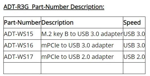 Uso del producto: M.2 tecla B admite el propósito de prueba de conmutación del módulo WWAN con tamaño 3042 o 3052