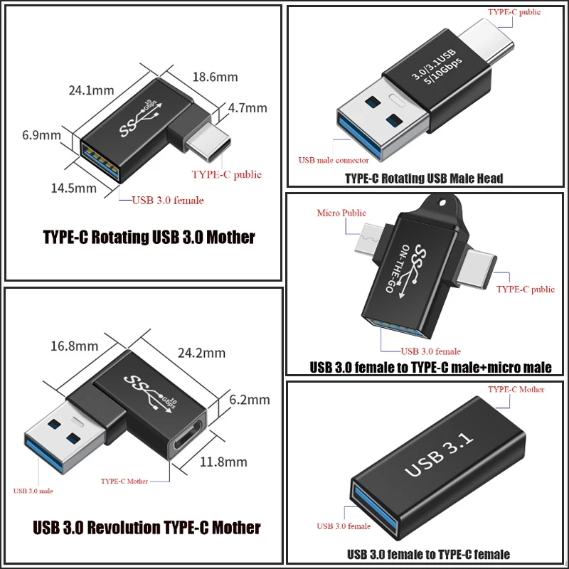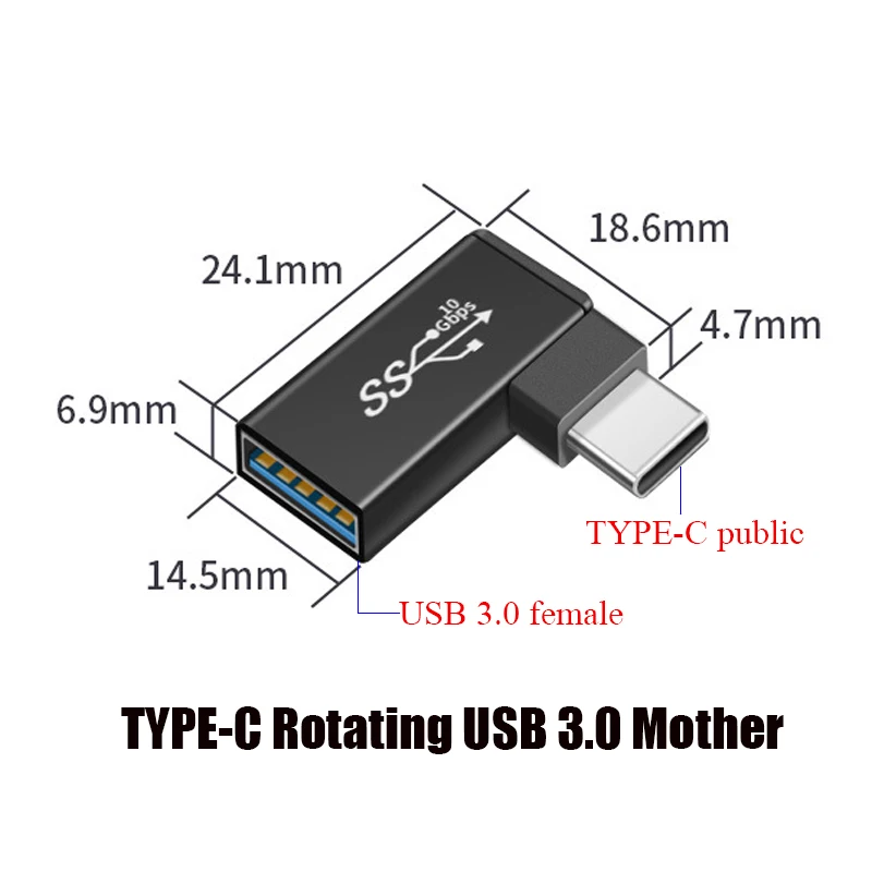 Comprar Adaptador USB 3,0 a Type-c3.1 OTG, adaptador giratorio hembra macho, extensión de transferencia de datos de carga extendida, teléfono, tableta, Notebook