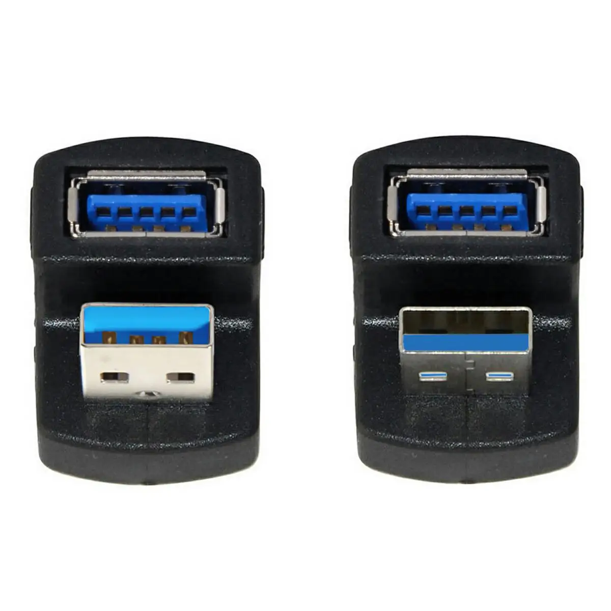 1 Juego de adaptador USB 3,0 en ángulo hacia arriba y hacia abajo A extensión macho a hembra 180 grados negro
