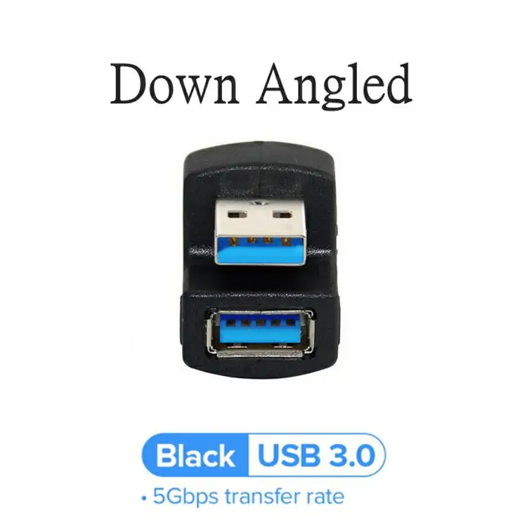 Adaptador USB 3,0 en ángulo, tipo A macho/hembra, admite una clasificación de transferencia de datos de 5Gbps.