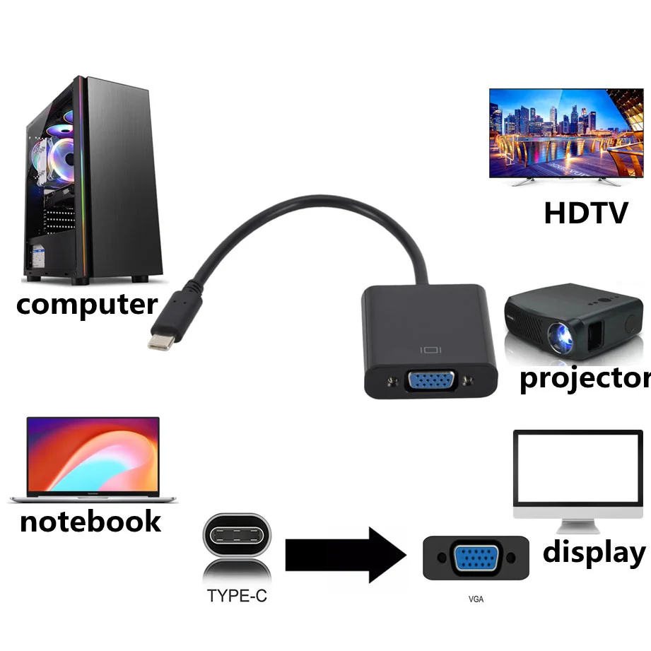 Cable adaptador USB 3,1 tipo C a VGA hembra USBC a VGA para Macbook de 12 pulgadas Chromebook Pixel Lumia 950XL superventas
