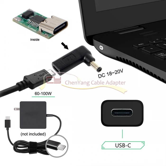 Comprar Adaptador USB 3,1 tipo C USB-C a DC 20V 5,5 2,1mm, disparador emulador PD, 90 grados de ángulo