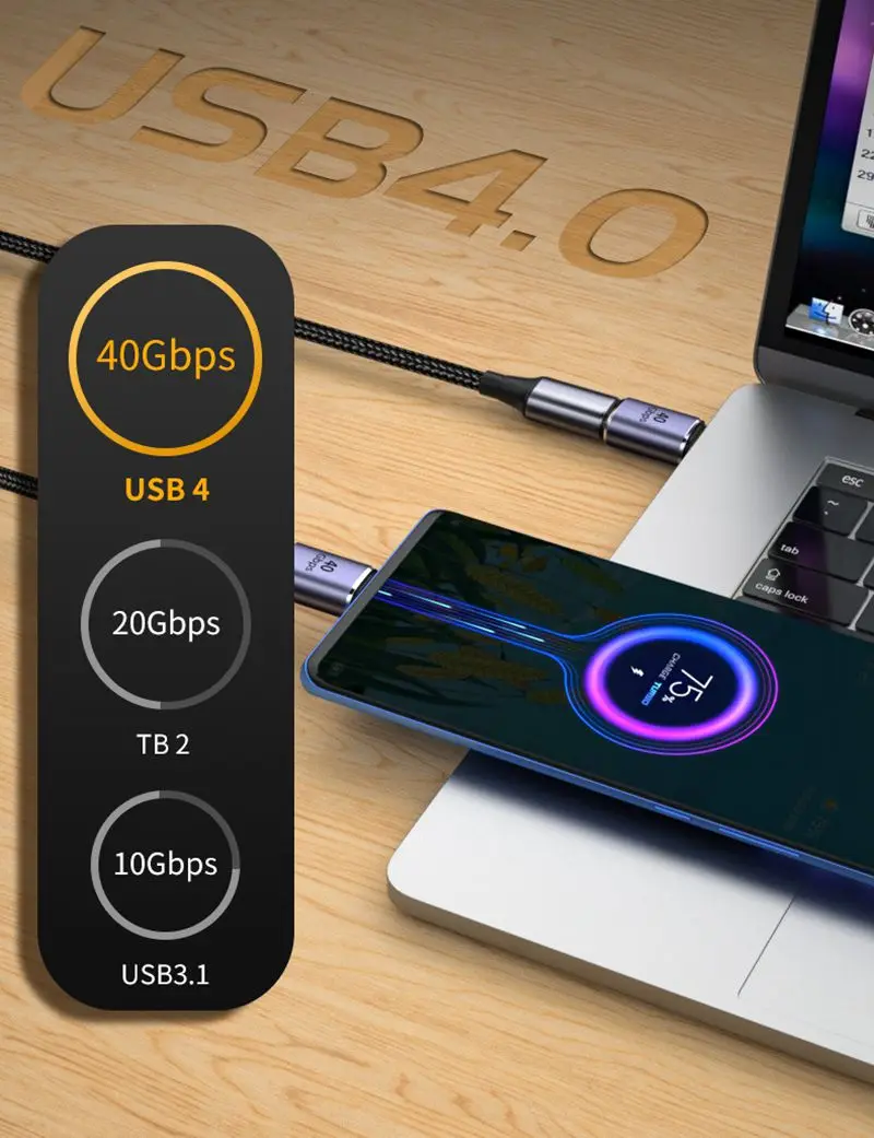 40Gbps USB 4,0 Tipo-C Adaptador USB C Convertidor de sincronización de datos macho a hembra