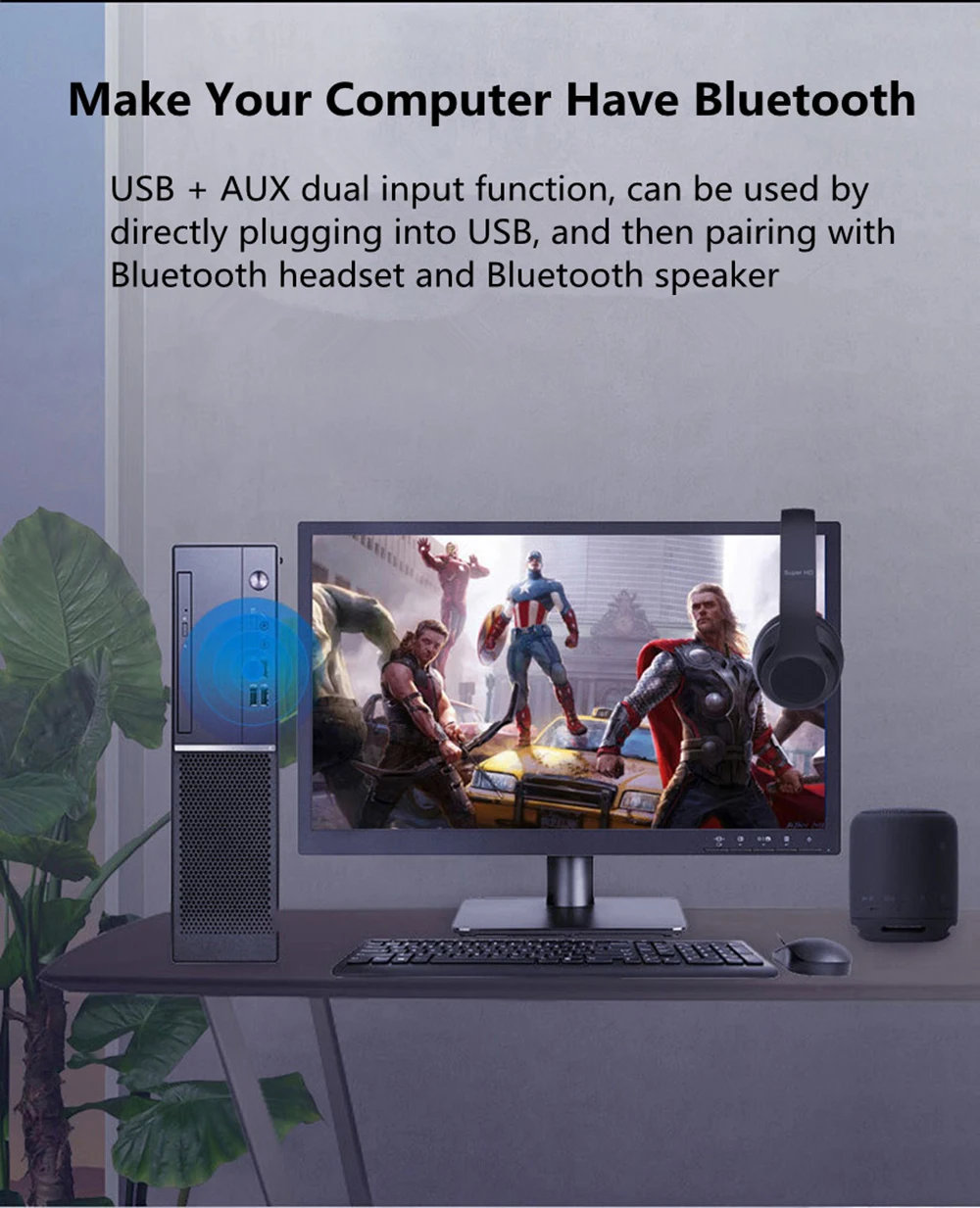 1: El USB se conecta directamente a la interfaz USB del ordenador cuando se utiliza la tarjeta de sonido, la luz azul parpadea, encienda los auriculares Bluetooth o el altavoz Bluetooth, entre en el estado de emparejamiento, el transmisor Bluetooth buscará automáticamente la conexión, Y la luz azul permanecerá encendida después de que la conexión sea exitosa.