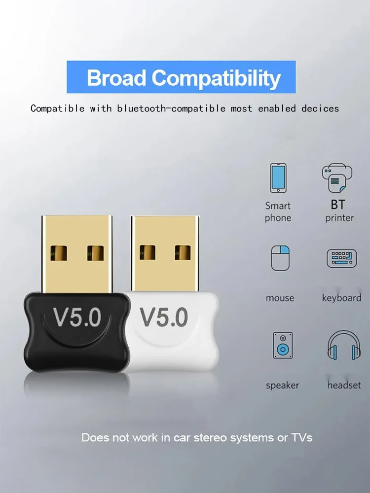 Descripciones de productos: BT V5.0 con Modo A/B/C/D (LMP9.949) Ventana de soporte7.8.10/vista/xp,mac os x dispositivos inalámbricos como teclado, mouse, altavoz, algunos auriculares (si desea conectar los auriculares, tenga cuidado al comprarlos. Es posible que algunas versiones no funcionen), impresoras, gamepad y más. Interfaz USB serie universal: usb 2.0/3.0/4.0 Recepción de 1 rango de envío: 20 m
