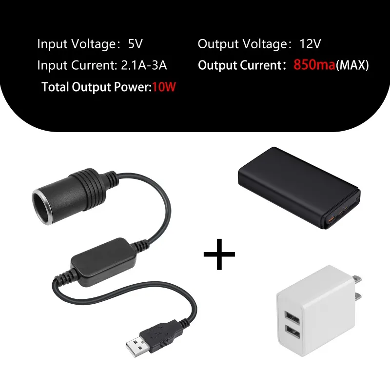 Adaptador USB de 5V a 12V, USB macho a 12V, enchufe para encendedor de cigarrillos de coche, Cable convertidor de fuente de alimentación hembra, salida de 12V y 10WNombre del producto: USB 5V a 12 encendedor de cigarrillos adaptador de corriente de refuerzo BK3592