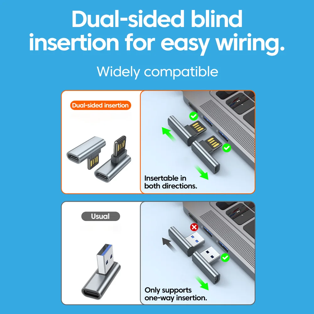 Comprar Adaptador USB a tipo C de inserción de doble cara, carga rápida, codos de 90 grados, convertidores USB a tipo C para iPhone 15 16