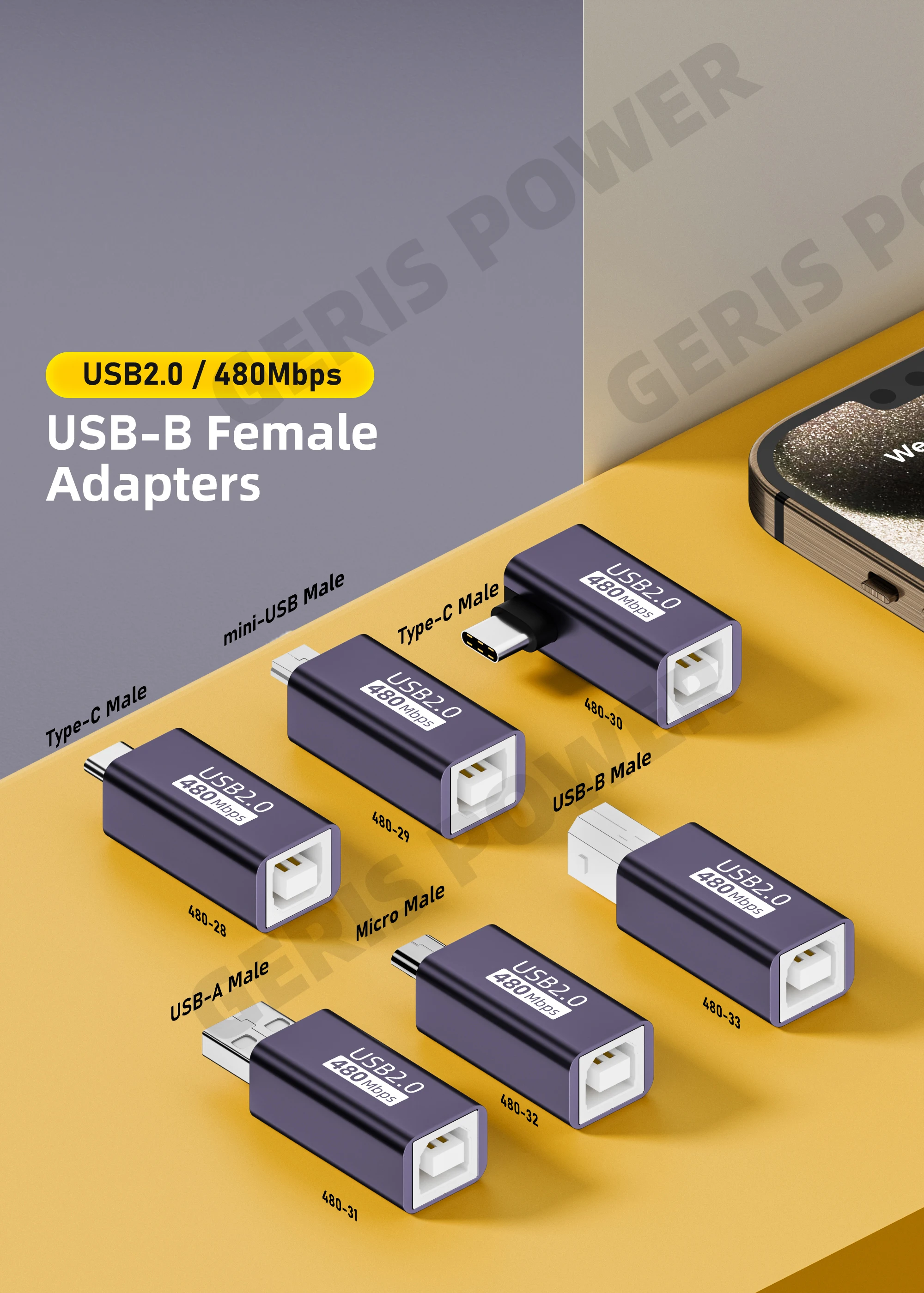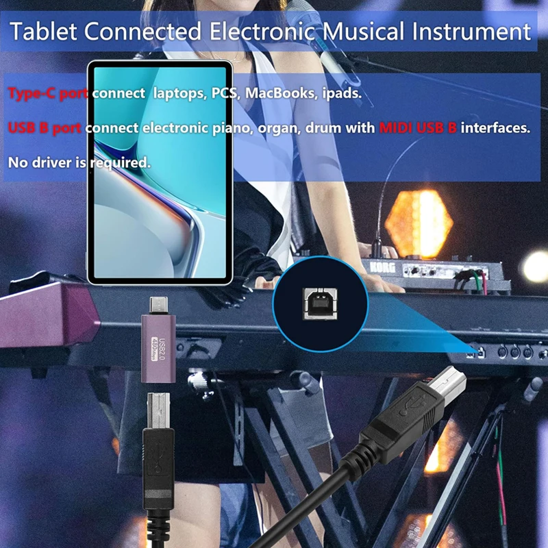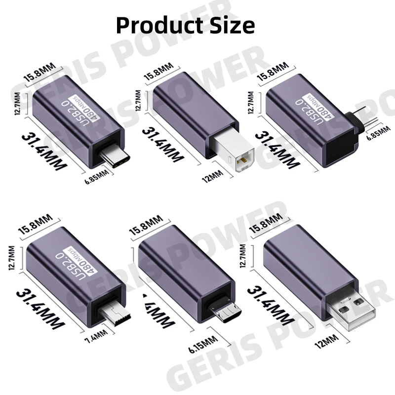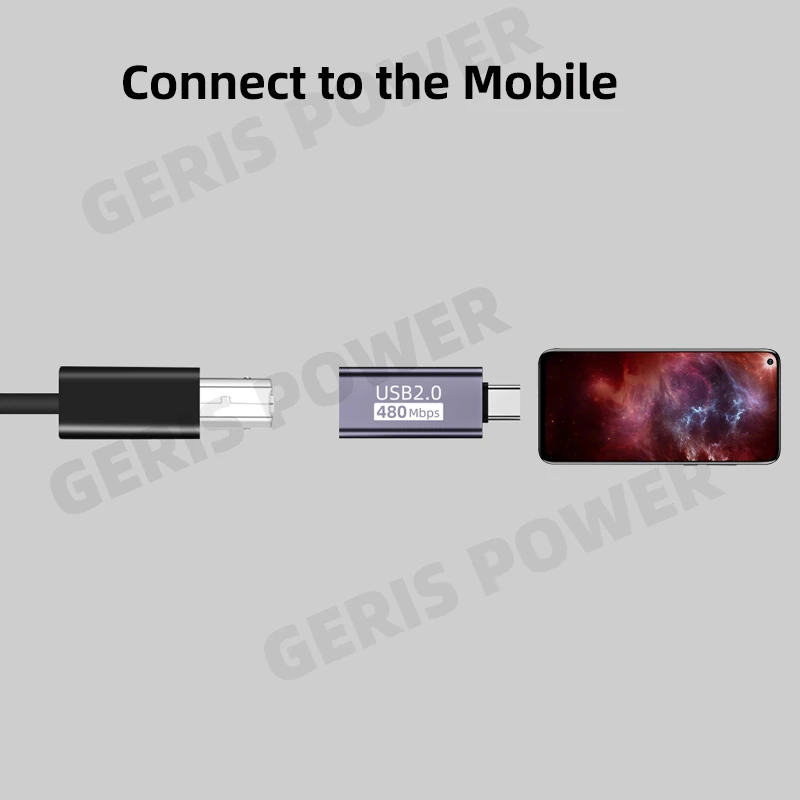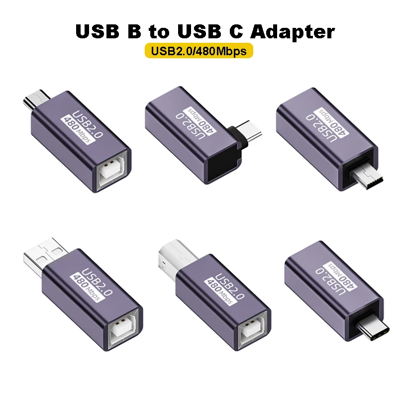 Adaptador USB a tipo C USB-B hembra a Micro USB macho Convertir conector de alimentación CC para impresora unidad de disco duro móvil Paino