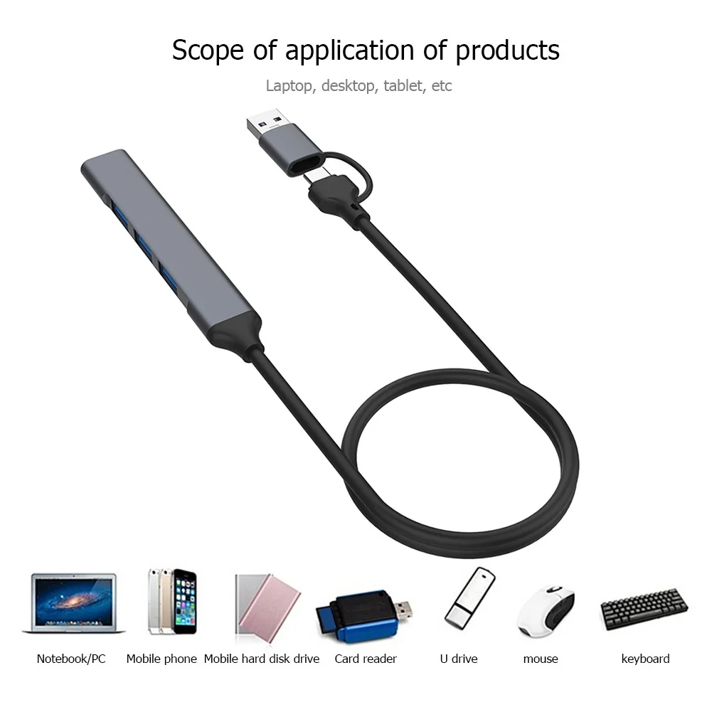 Comprar Adaptador USB A USB C, divisor múltiple de 4/7 puertos, estación de acoplamiento, accesorios de carga para ordenador portátil