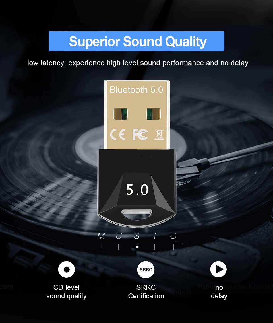 Comprar Adaptador Usb Bluetooth 5,0 para Pc, Dongle receptor Bluetooth 5 0, transmisor inalámbrico 4,0, adaptador blues para ordenador