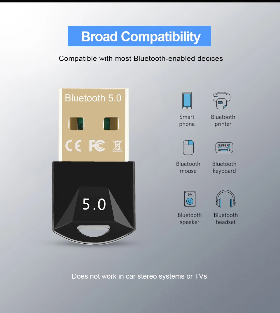 1. Adaptador mini USB Bluetooth 5,0 con alta velocidad de hasta 3Mbps.