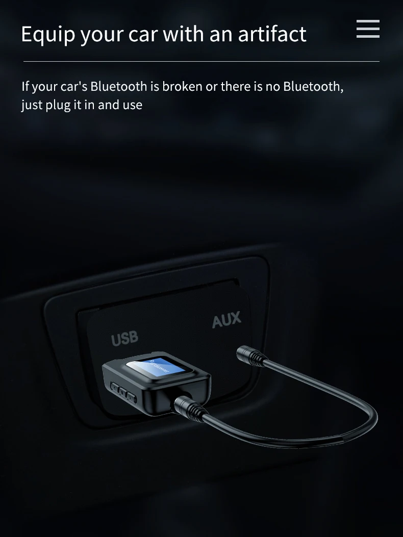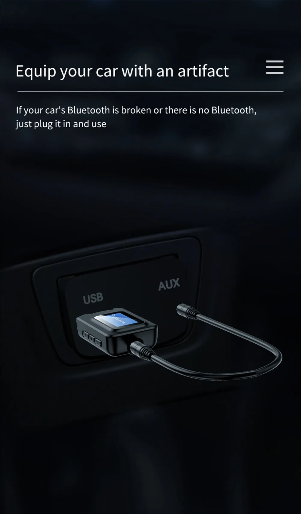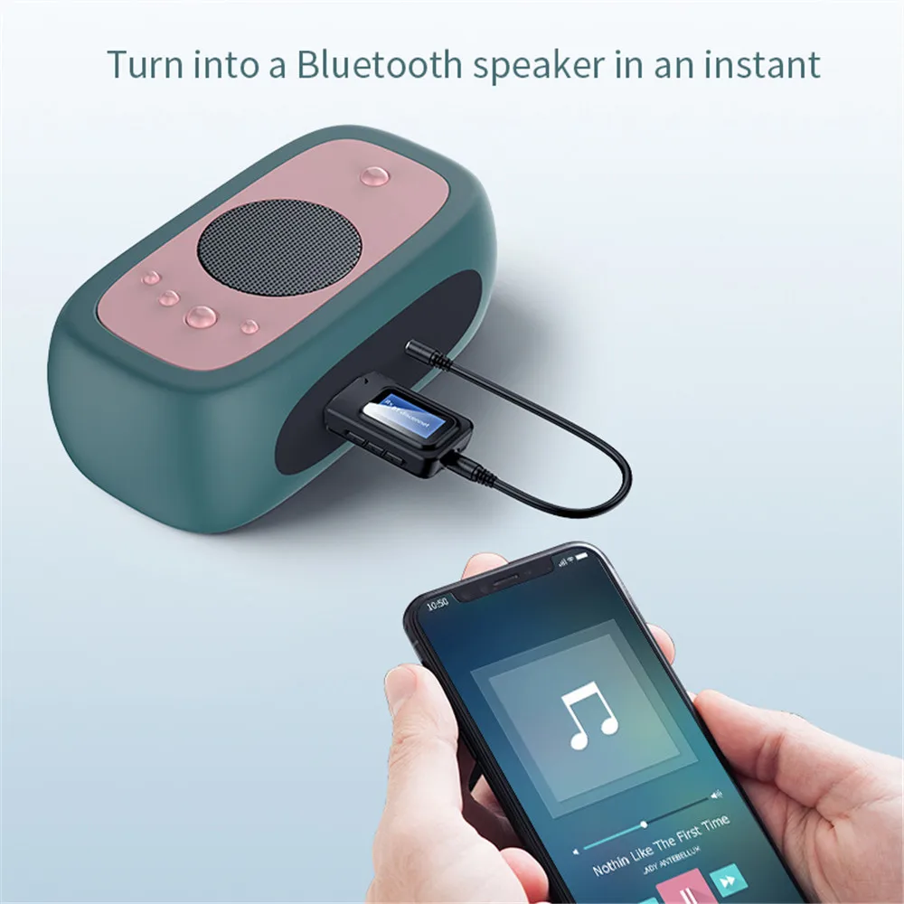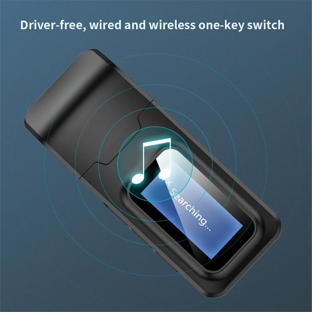 Comprar Adaptador USB con Bluetooth 5,0, receptor transmisor con pantalla LCD, Audio de 3,5mm, conector AUX, adaptador estéreo para auriculares, coche, PC, TV