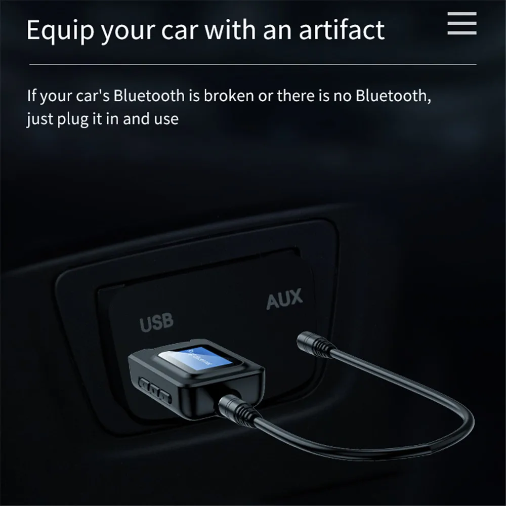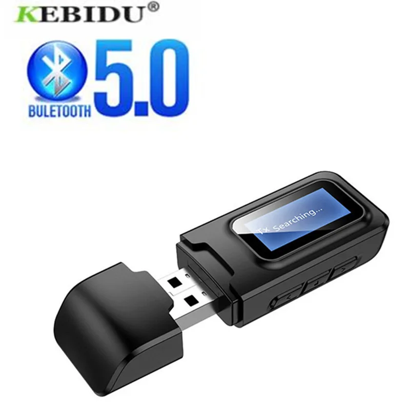Comprar Adaptador USB con Bluetooth 5,0, receptor transmisor con pantalla LCD, Audio de 3,5mm, conector AUX, adaptador estéreo para auriculares, coche, PC, TV