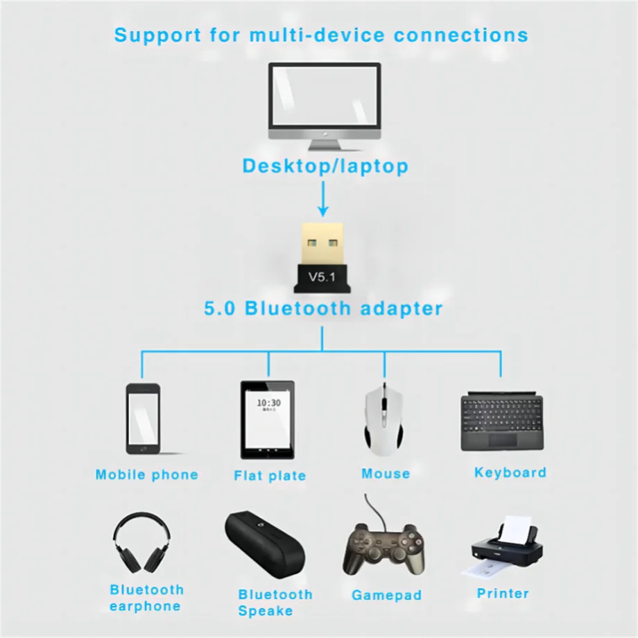 Comprar Adaptador USB Bluetooth 5,1, receptor transmisor, Dongle inalámbrico de Audio Bluetooth V5.1 para PC, ordenador portátil