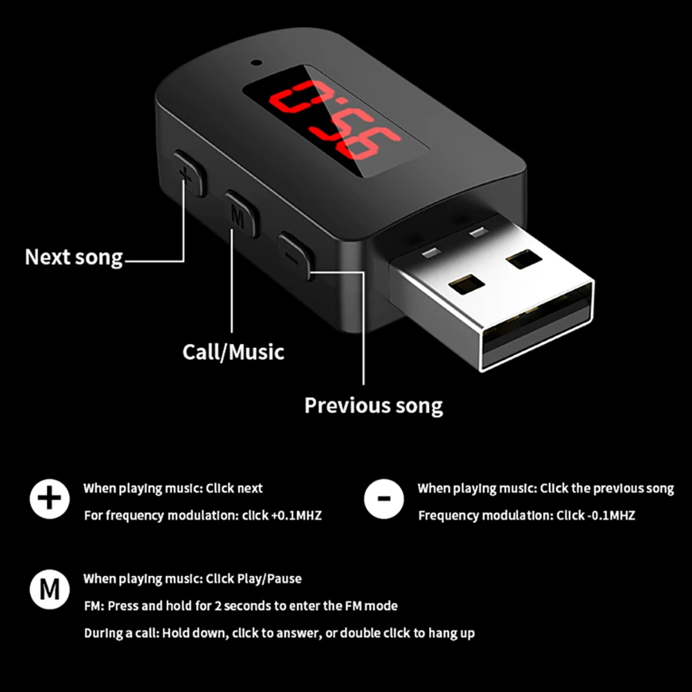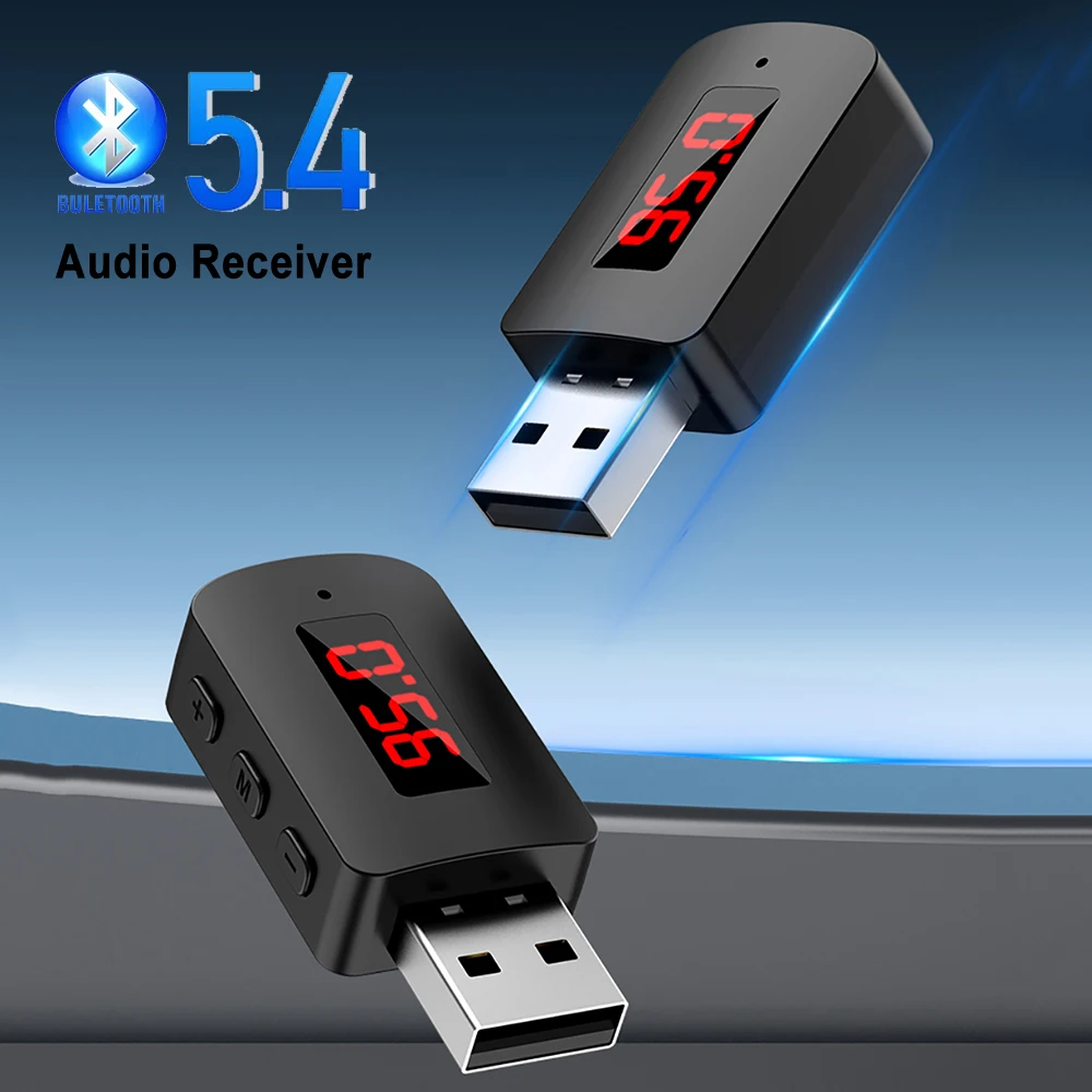 Comprar Adaptador USB Bluetooth 5,3 5,4 Dongle USB transmisor receptor de Audio y música inalámbrico llamada con manos libres con micrófono pantalla LED para coche