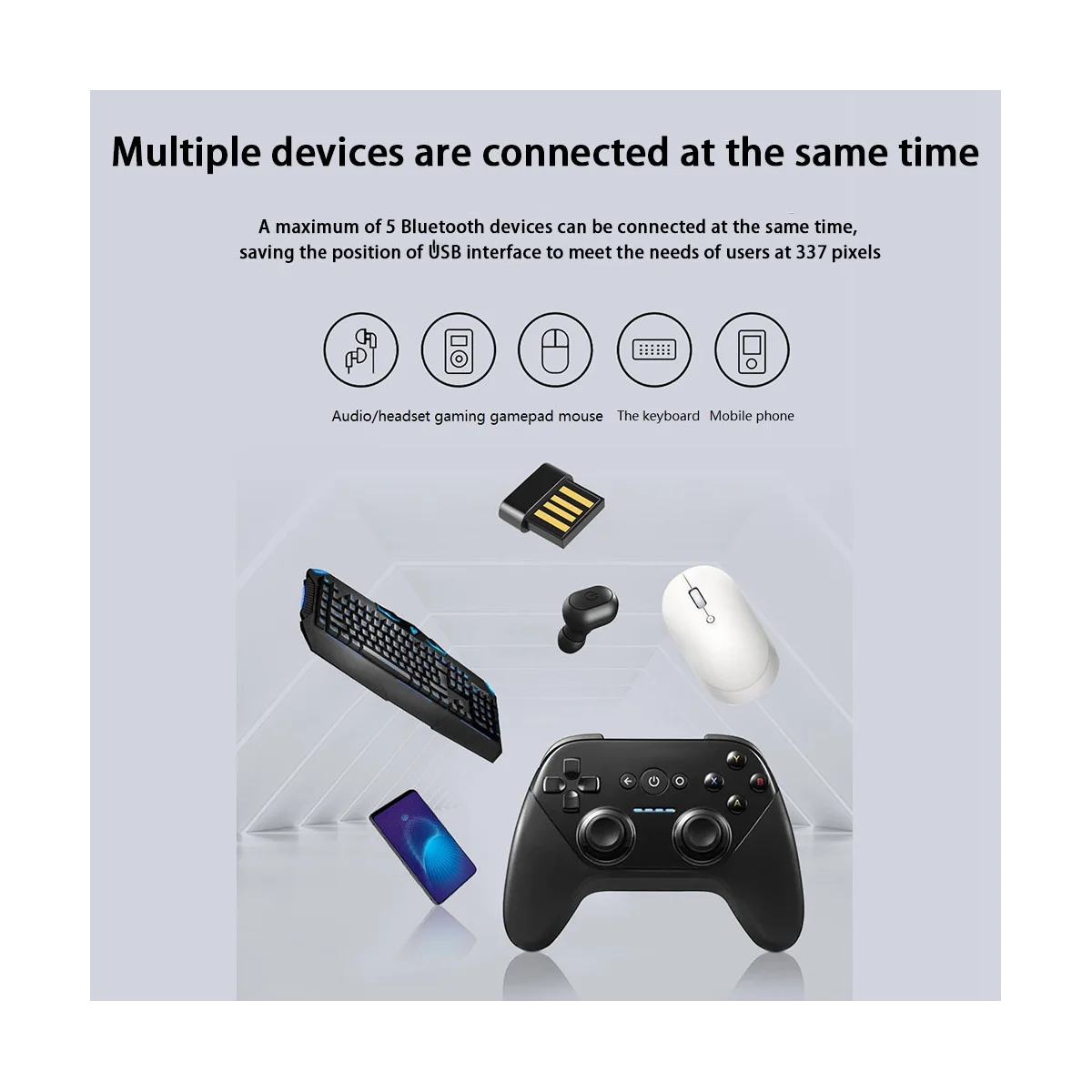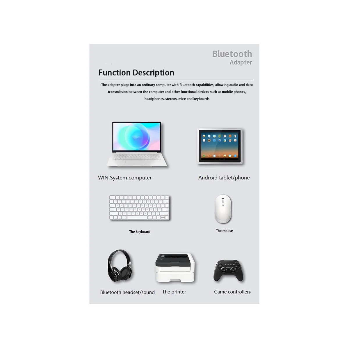 Compatible con Bluetooth 2.0/3.0/4.0/5.0/5.1 y otras versiones. Para resolver el problema de que la computadora no tiene función Bluetooth, conecte el adaptador Bluetooth para conectarse de forma inalámbrica y realice la transmisión Bluetooth. Win8.1/10/11 plug and play gratuito. Admite hasta 5 dispositivos Bluetooth para conectarse al mismo tiempo, ahorrando la ubicación de la interfaz USB para satisfacer las diversas necesidades de los usuarios. Mini apariencia, textura brillante, fácil de llevar. Nota: El producto es adecuado para el sistema Windows 8.1/10. No disponible para todos los dispositivos IOS Apple, incluidas computadoras Mac, iPads e iPhones. parámetro: Tipo: Adaptador USB Bluetooth Solución de chip Bluetooth: ATS2851 Versión: Bluetooth 5.3 Tipo de interfaz: USB Distancia de transmisión: 10M Velocidad de transmisión: 3 Mbps Frecuencia de trabajo: 2,4G (MHz) Color negro Material: ABS Tamaño: 15x14x5mm Contenido del paquete: 1 adaptador Bluetooth. Solo el contenido del paquete anterior, otros productos no están incluidos. Nota: Los reflejos de la luz y las diferentes pantallas pueden hacer que el color del elemento en la imagen sea un poco diferente al real. El error de medición permitido es +/- 1-3 cm.