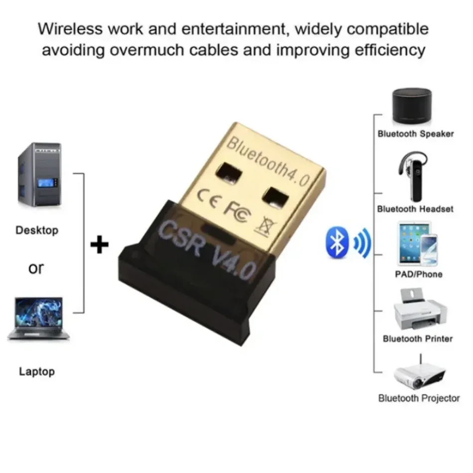 El adaptador Bluetooth USB solo se puede conectar a su computadora de escritorio o portátil, y no se puede usar en otros dispositivos como un automóvil.