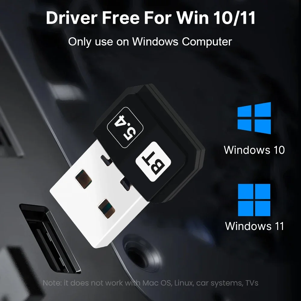 Comprar Adaptador USB Bluetooth 5,4, receptor y transmisor inalámbrico, Dongle de Audio, para Win10/11, SIN controlador