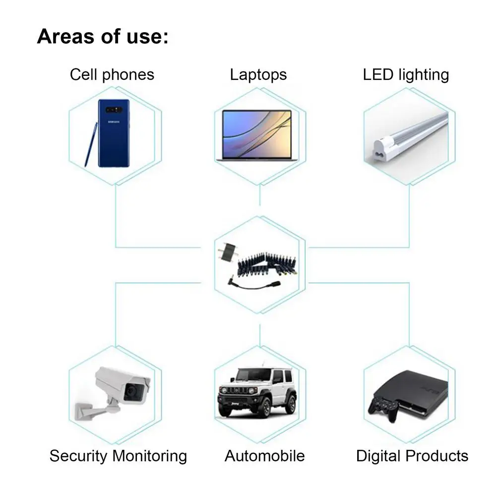 4.Amplias aplicaciones: nuestro adaptador USB C a DC está equipado con una variedad de adaptadores de puerto redondo, lo que permite múltiples opciones de interfaz que proporcionarán la solución de carga más adecuada para varias marcas y modelos de portátiles.Perfecto para negocios, juegos y entretenimiento, encuentre la solución que necesita aquí